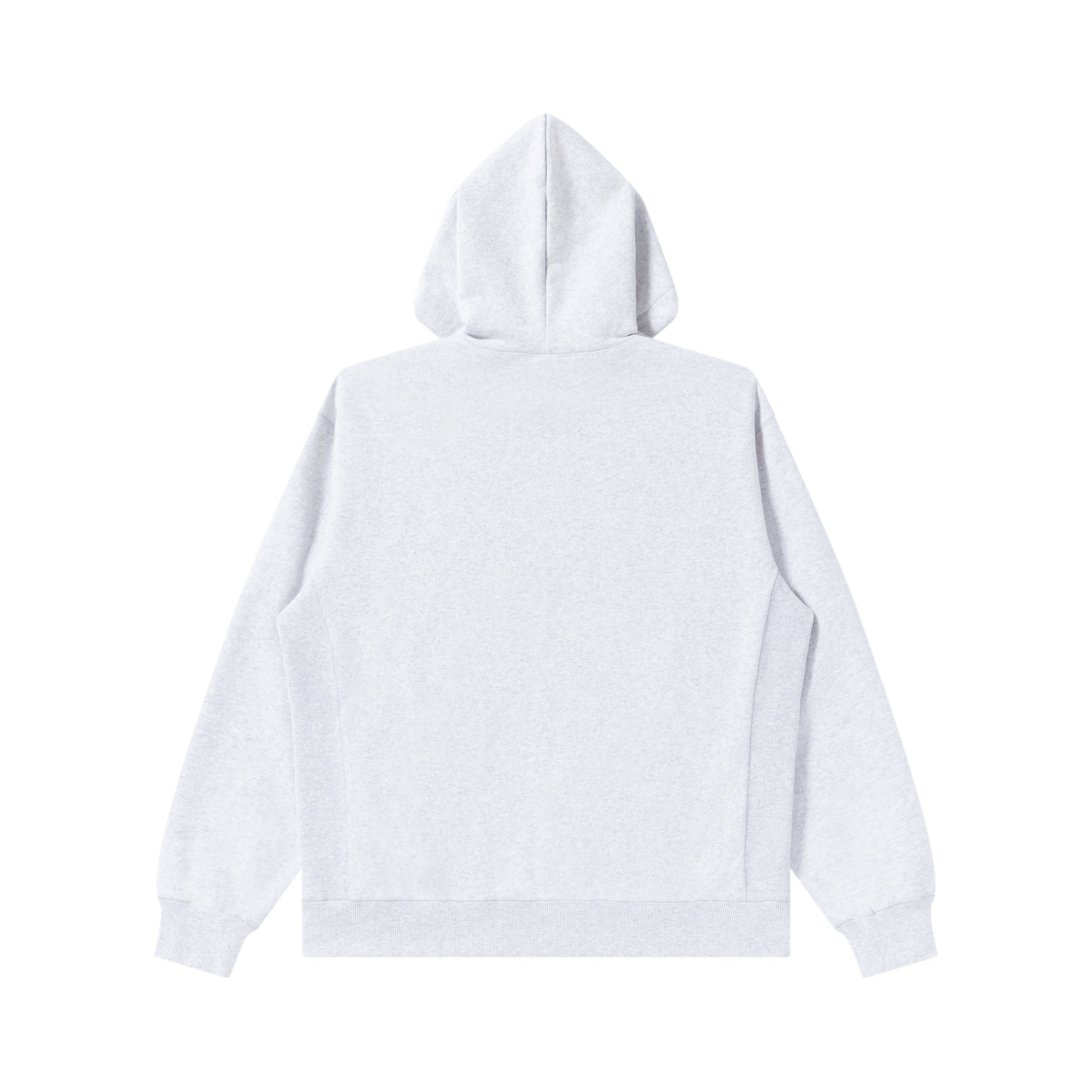 フード部にはボディと同系色のロゴ刺繍が入る。