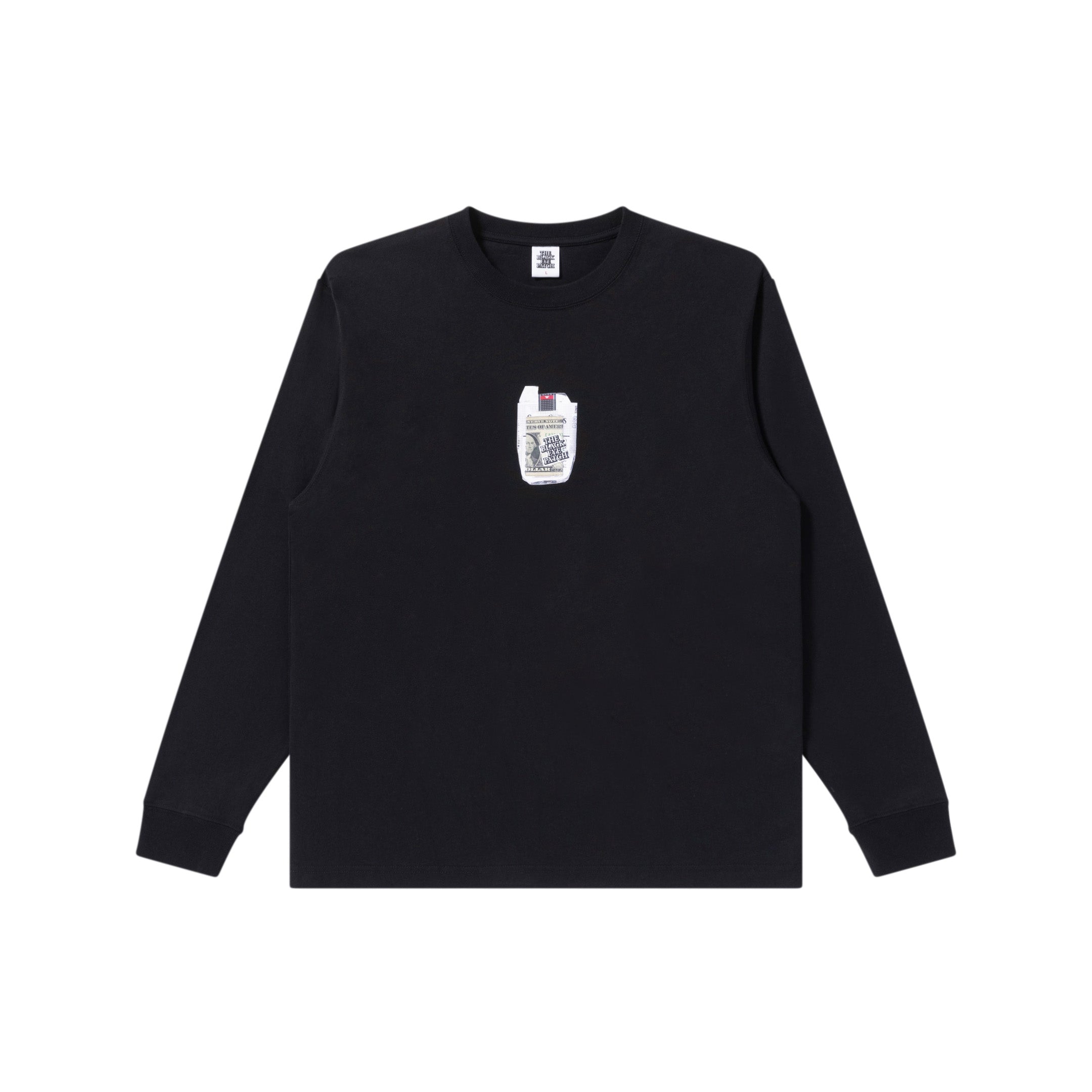 タバコのボックスを財布として使用している中に "OG LABEL" ロゴ・ステッカーが入ったグラフィックがフロント中央にプリントされたロングスリーブ T シャツ。