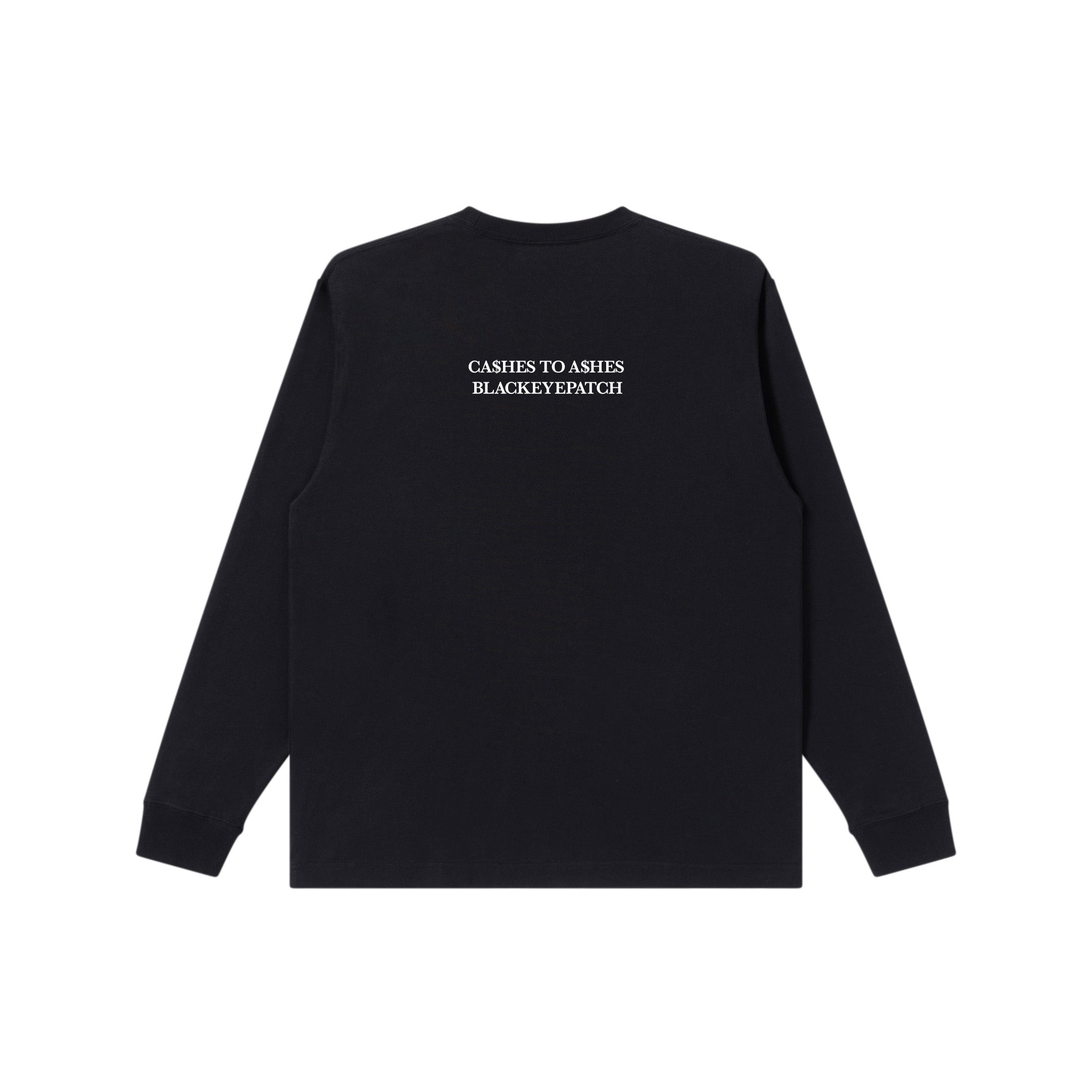 A 8.5oz Long sleeve T-shirt featuring a graphic with “OG LABEL” logo sticker inside a cigarette box used as a wallet printed on the front.