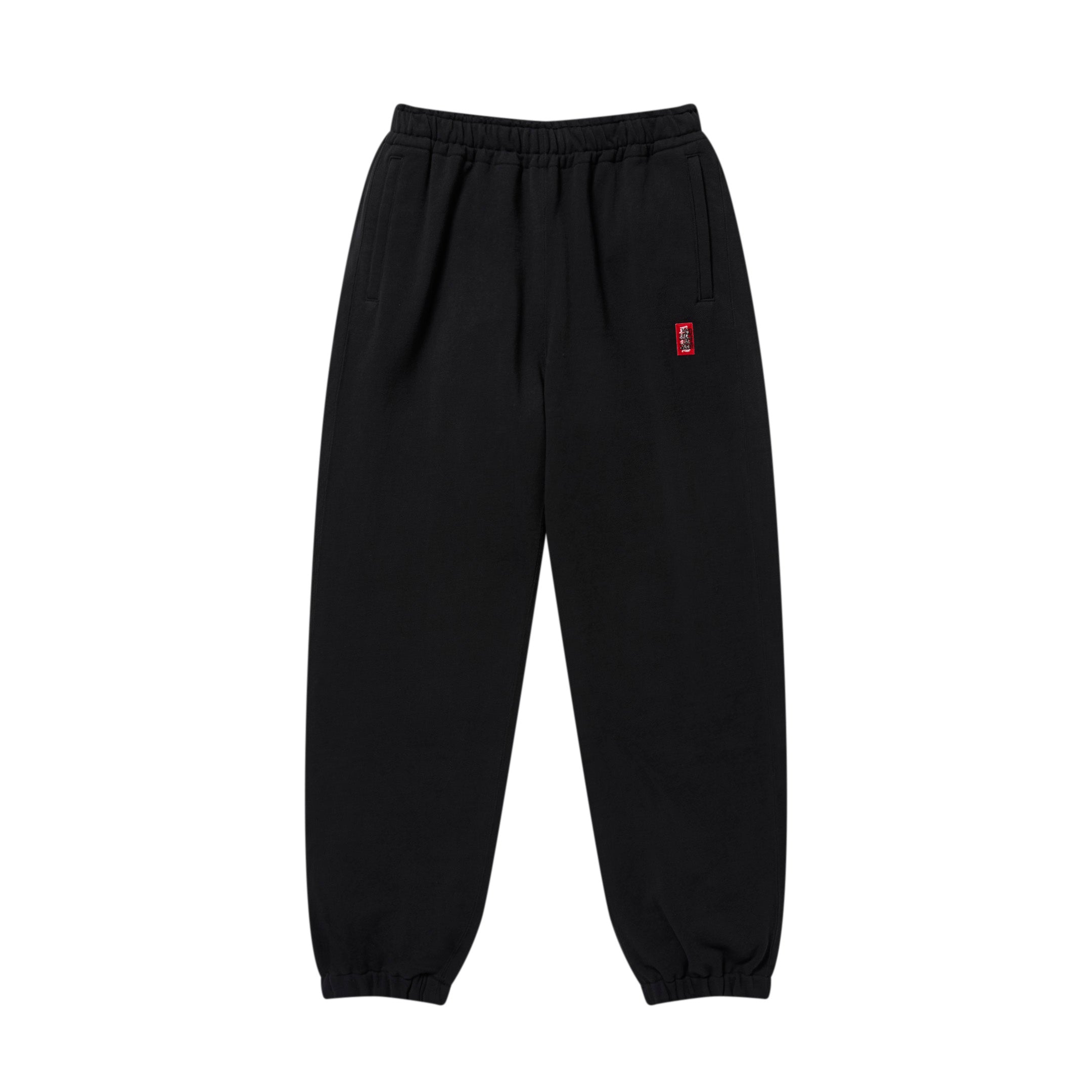 A 12.5oz sweatpants featuring a small “Handle with Care” label graphic patch on the left thigh. Available as a set with the same design crewneck sweatshirt.