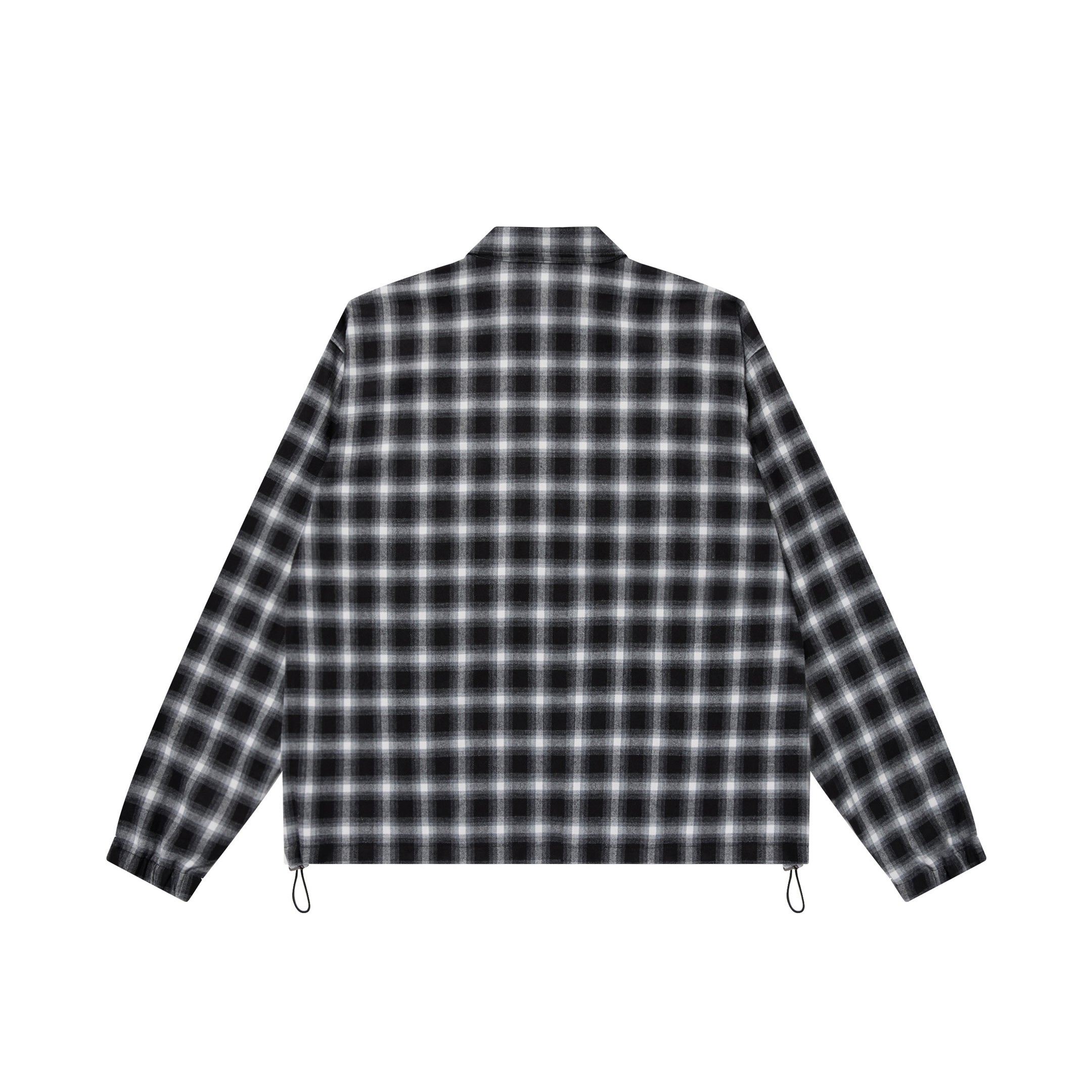 Flannel check fabric half-zip pullover shirt. Features a patch name on the front and adjustable silhouette with a drawstring at the hem.