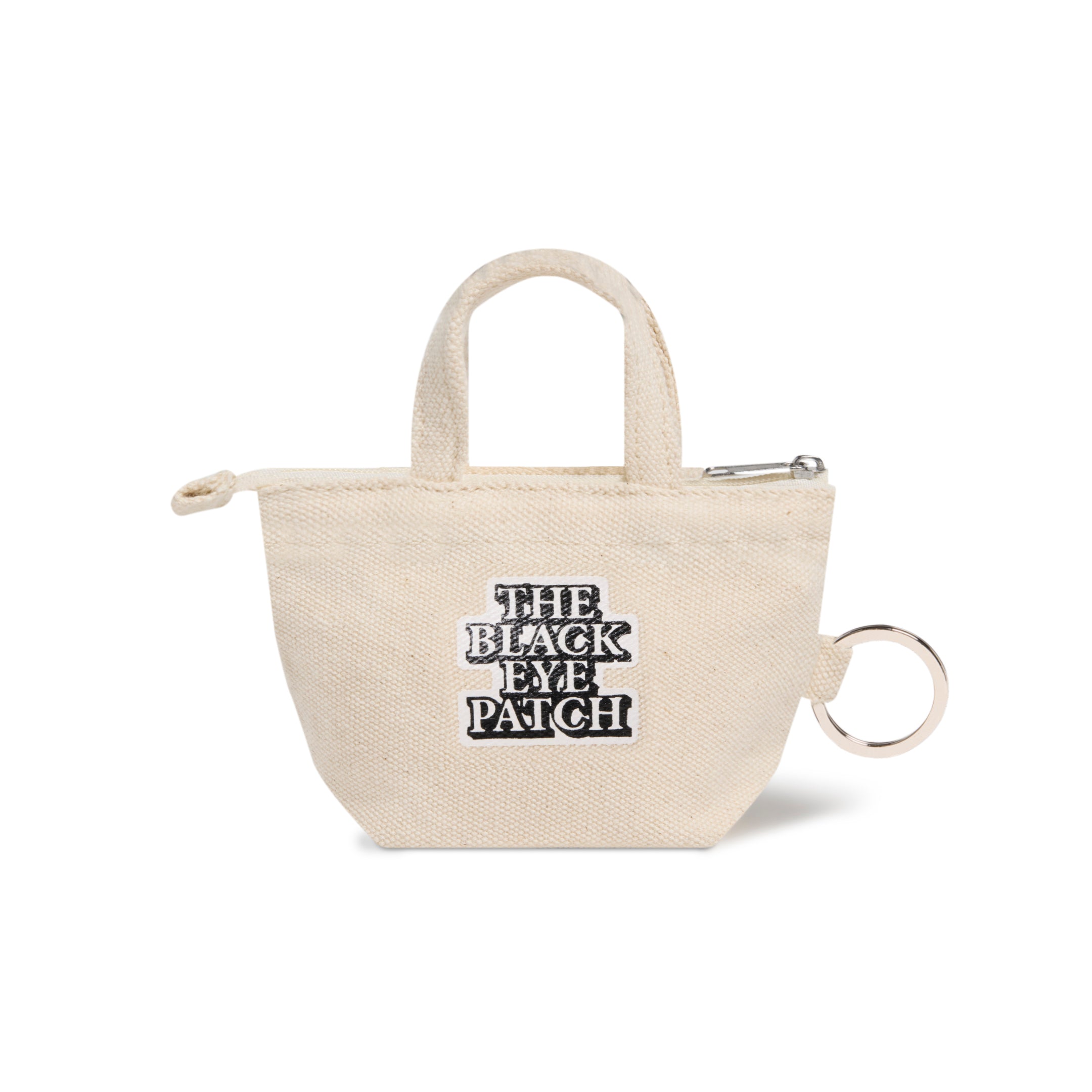 A keychain featuring a mini version of our classic canvas tote. It has a zipper closure, so you can store small items inside.