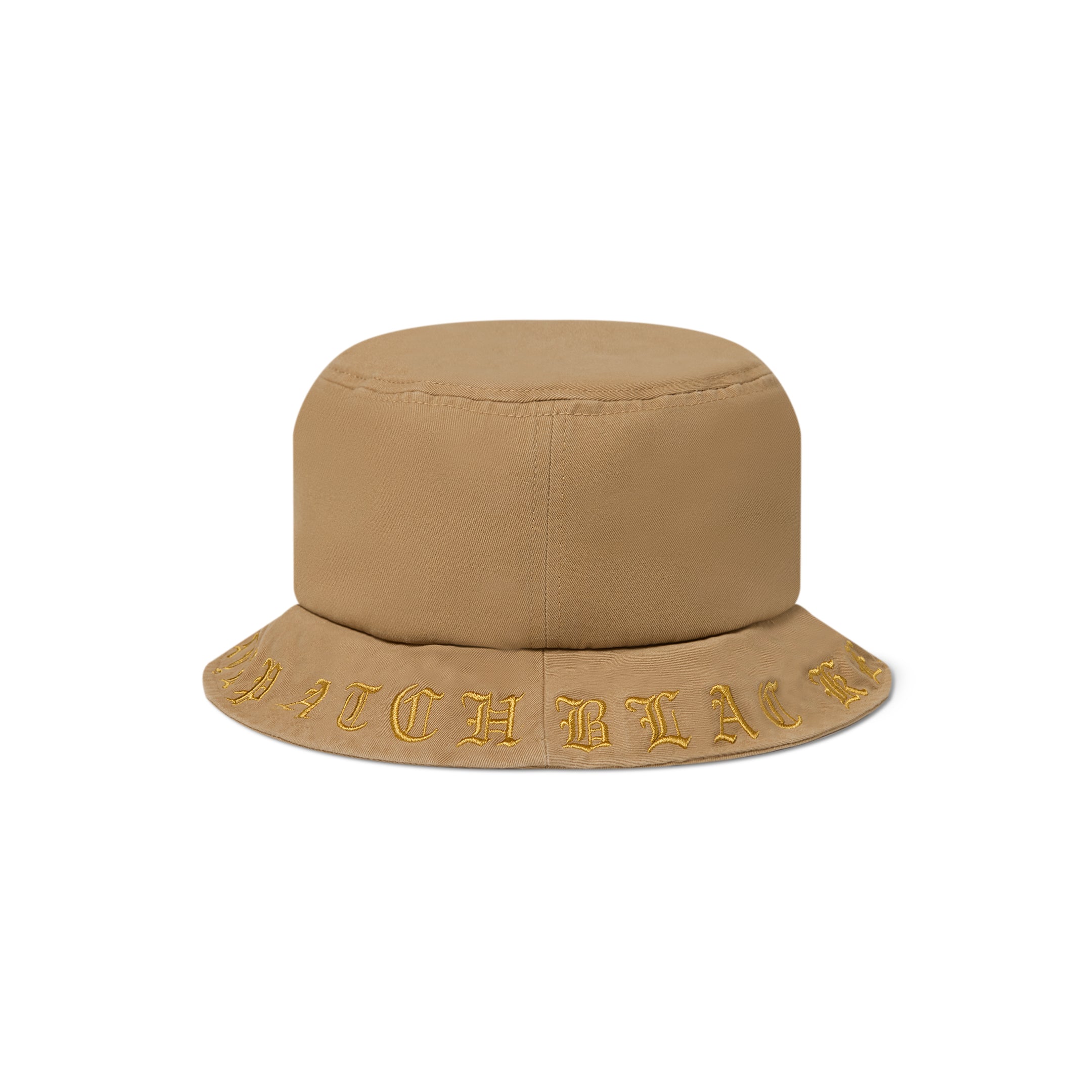 コットンツイルを使用したバケットハットのブリムにグラフィックを一周刺繍を施した新作。