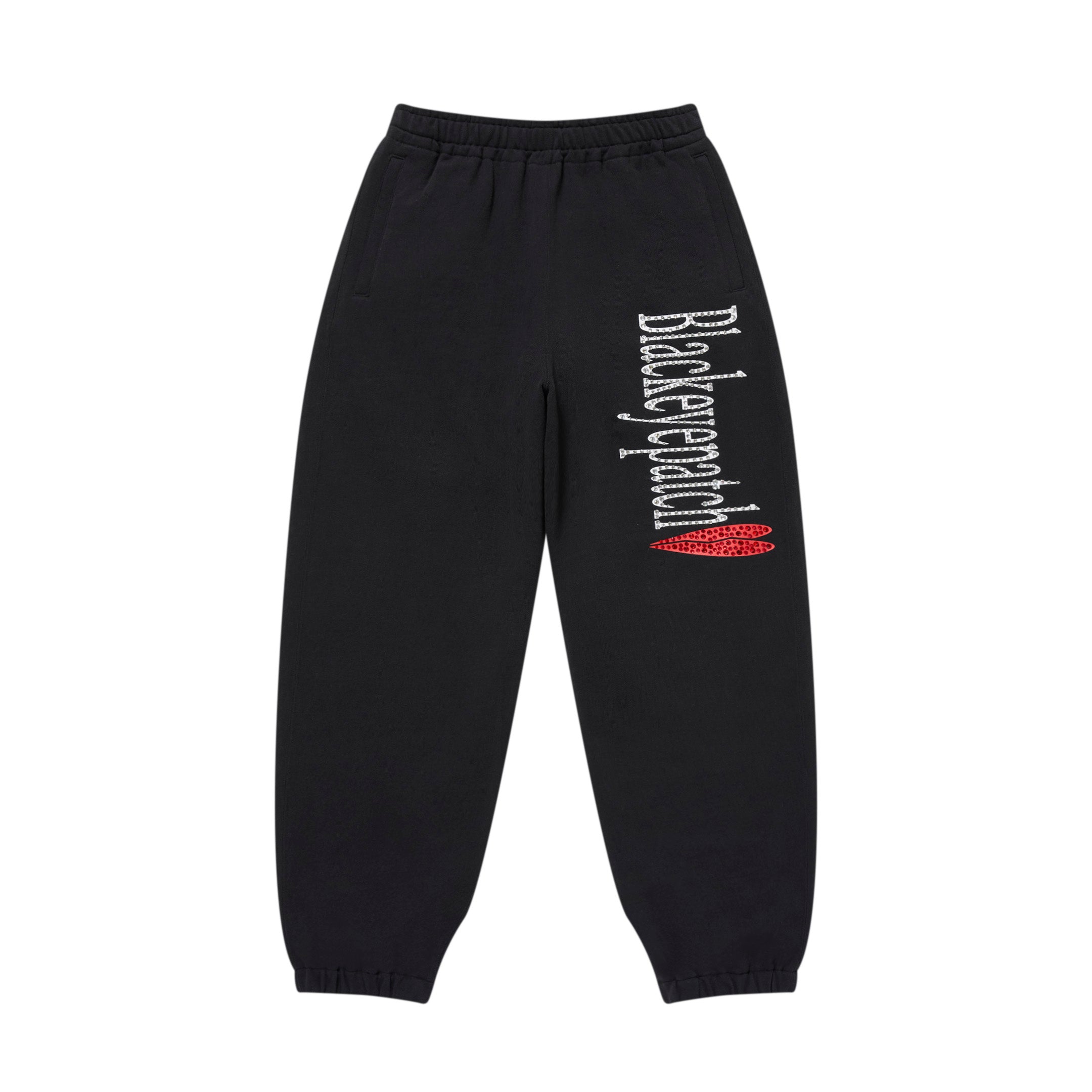 RHINESTONED HEARTBREAK LOGO SWEAT PANTS BLACK