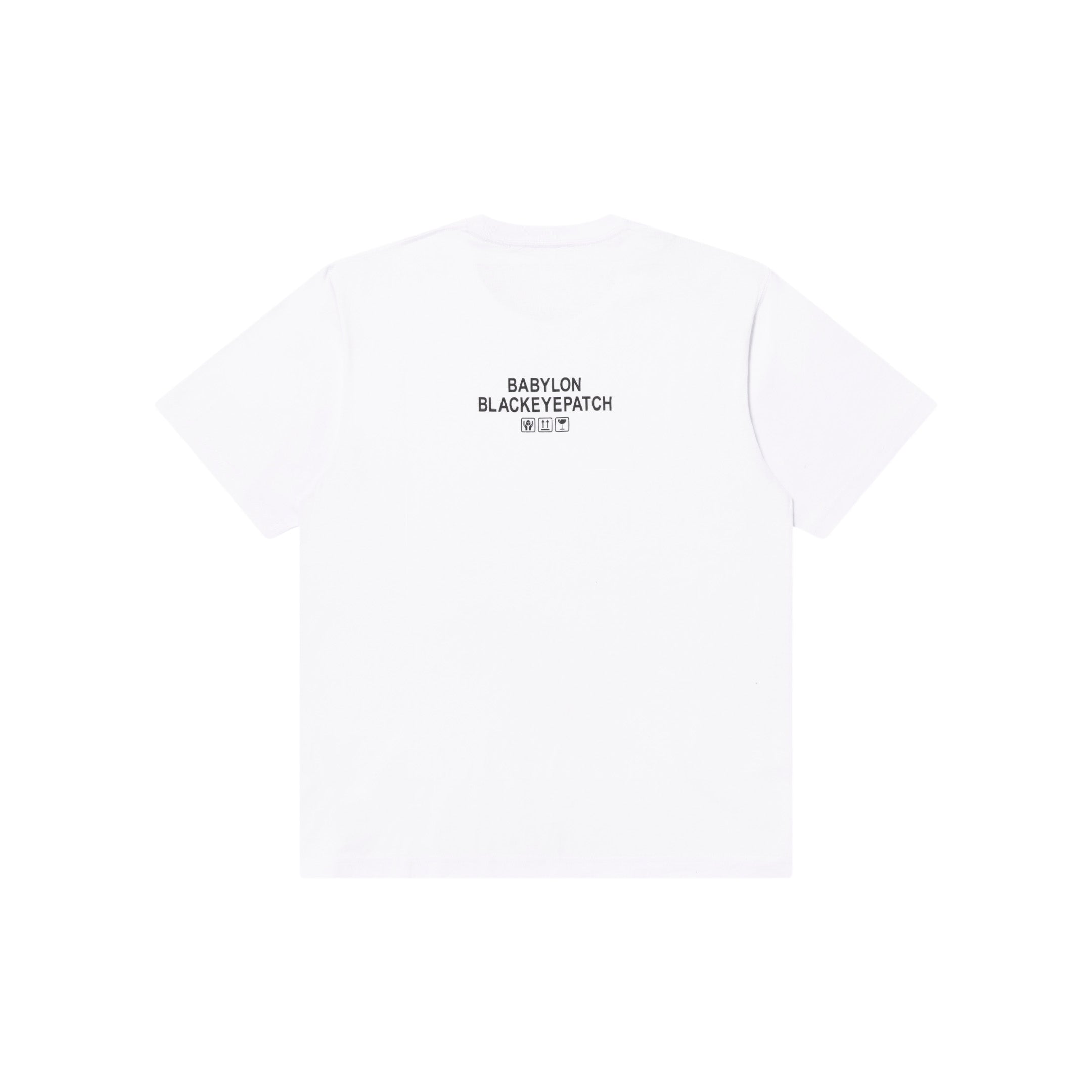 Collaboration with Los Angeles-based skate brand BABYLON LA. T-shirt featuring printed a design that combines the BABYLON LA's standard logo peace symbol with the OG LABEL logo.