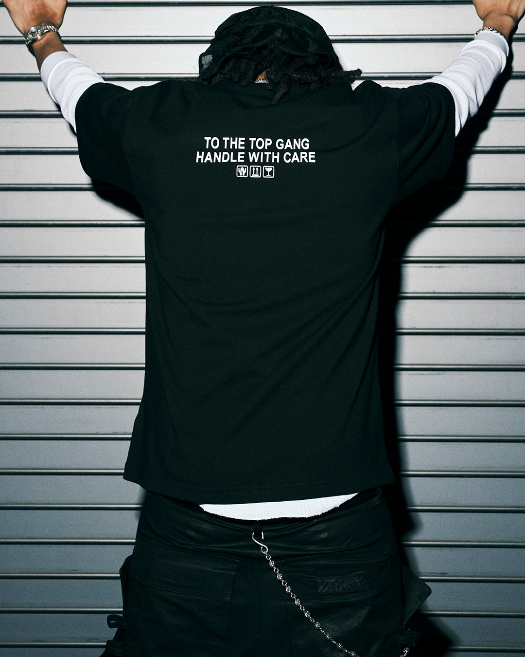 ラッパーの ¥ellow Bucks を擁するヒップホップクルー TTTG(To The Top Gang) とのコラボレーション T シャツ。