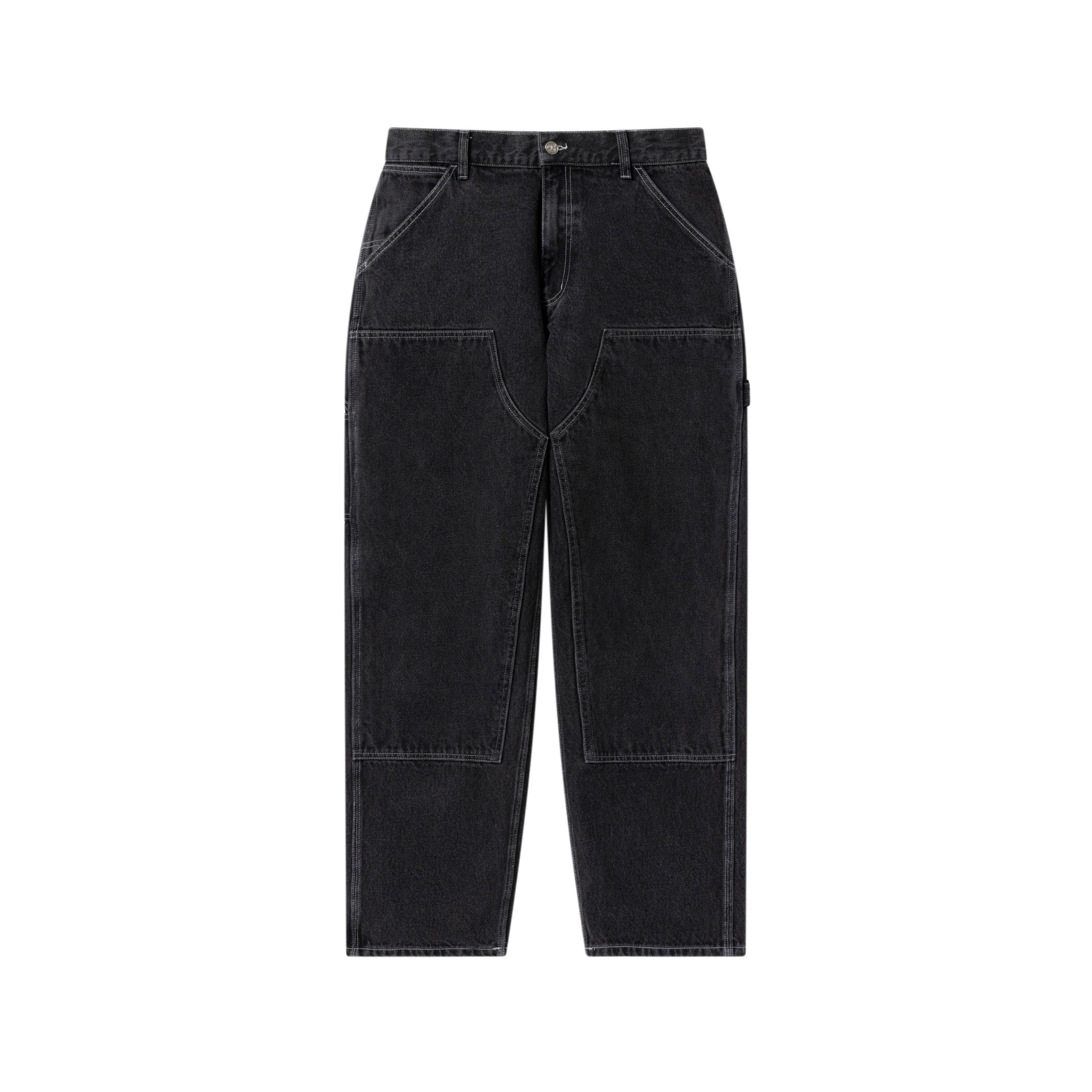 B EMBLEM DOUBLE KNEE DENIM PANTS BLACK