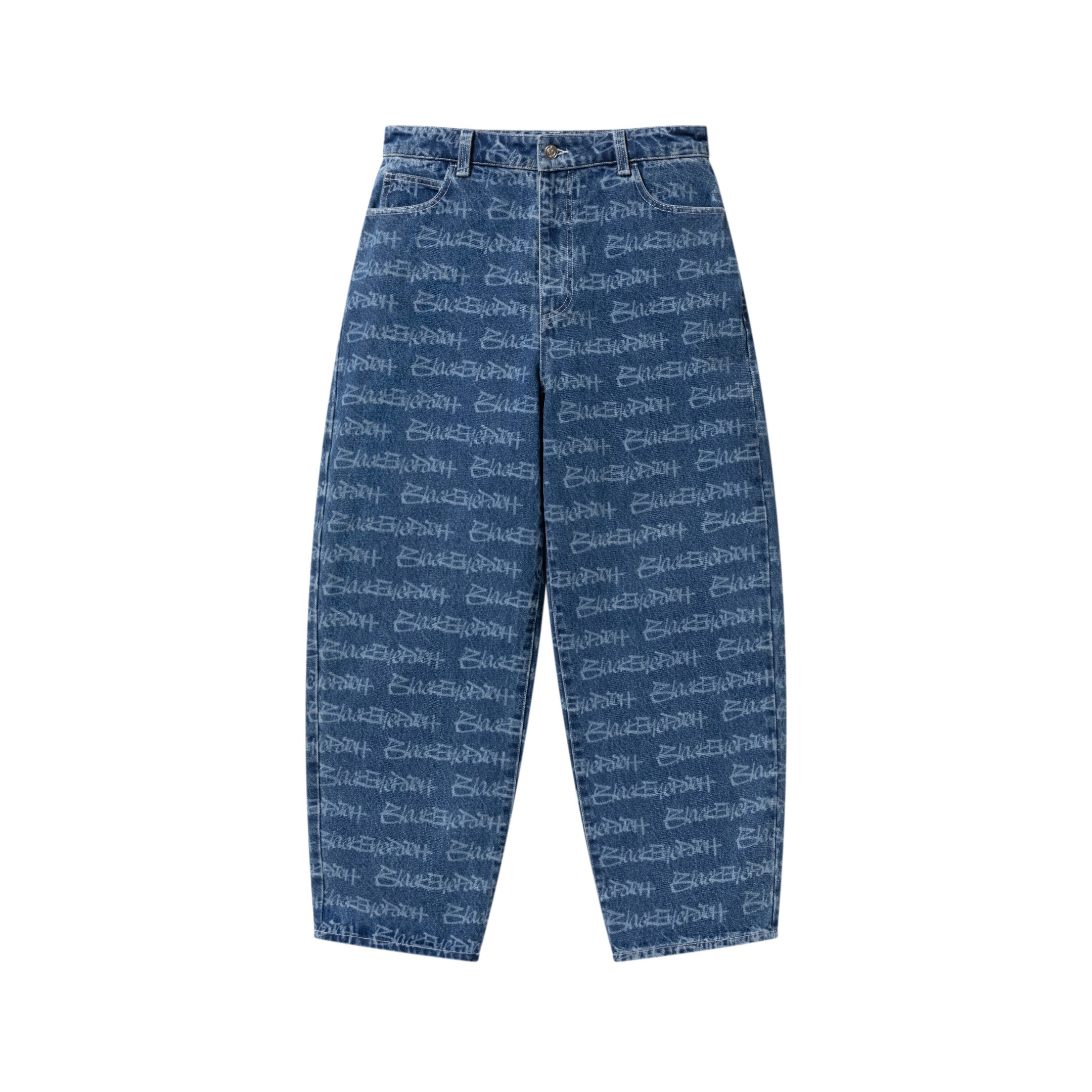 FASTHAND SCRIPT PATTERENED EXTRA BAGGY JEANS INDIGO