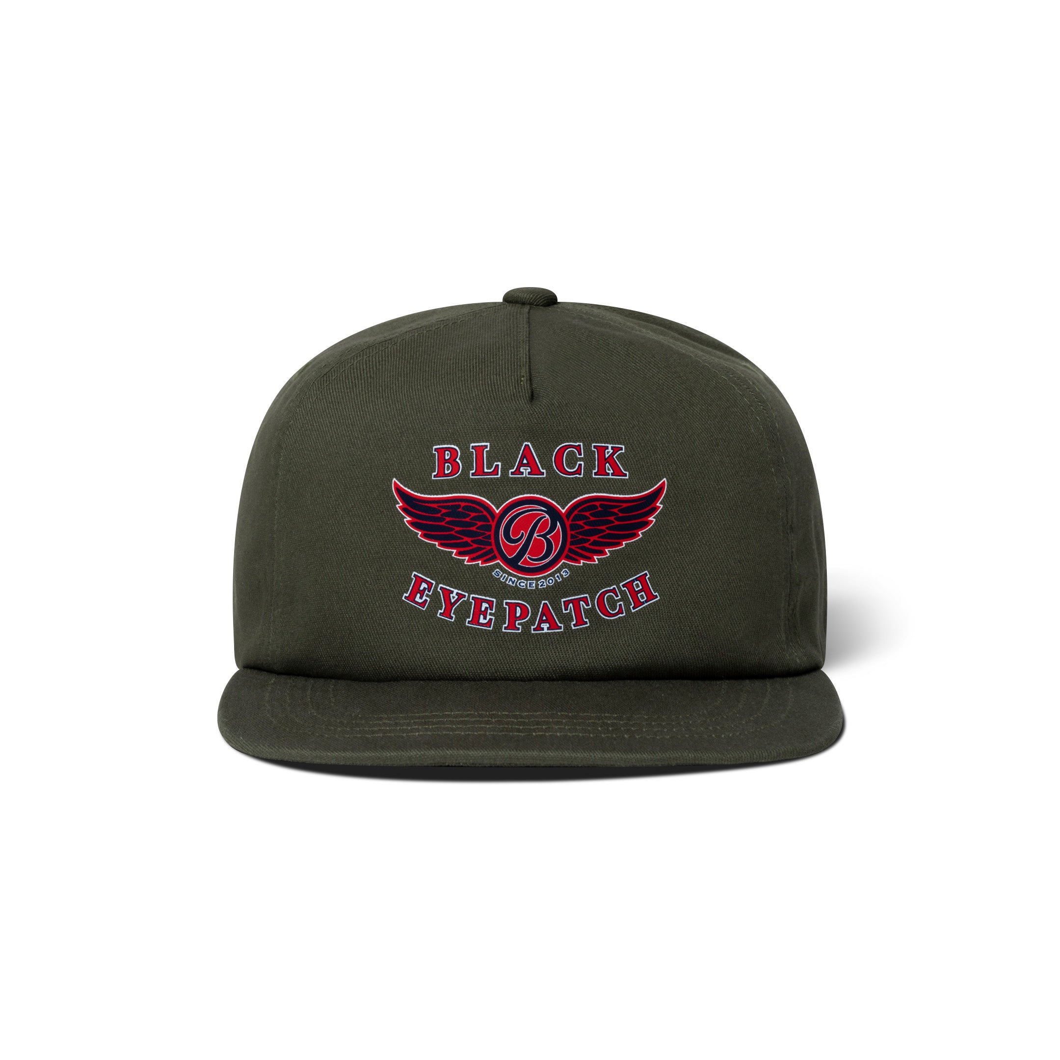 "B" エンブレムに新たにウイングを取り入れたグラフィックがプリントされたパネルキャップ。スナップバック仕様で背面にもブランドロゴの刺繍が入る。