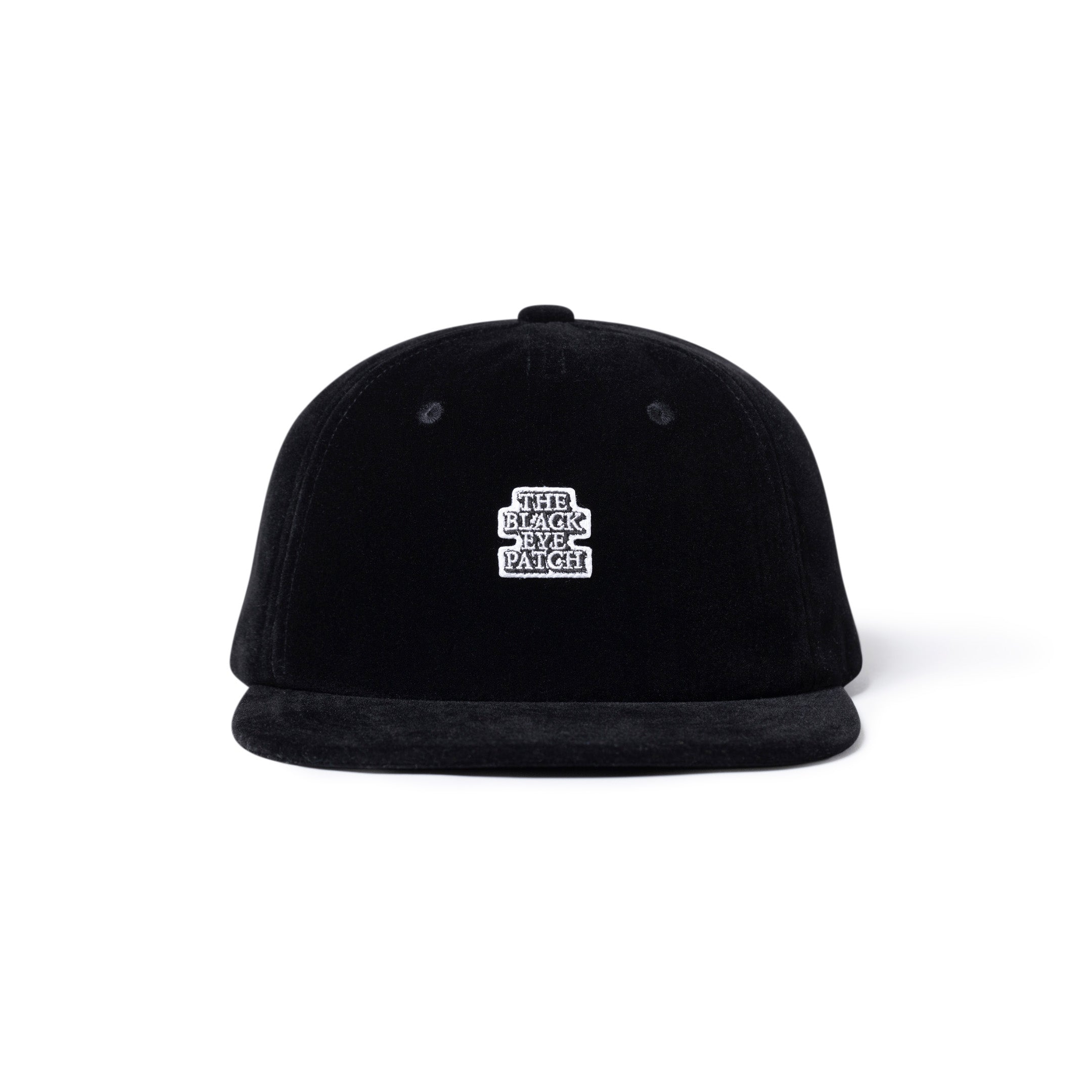 フロントに "SMALL OG LABEL" のワッペンを取り付けたベロア素材の 5 パネルキャップ。 バックにもブランド名の刺繍が入る。 サイズ調整用のアジャスターは "B EMBLEM" のパーツ付きのレザーベルト。