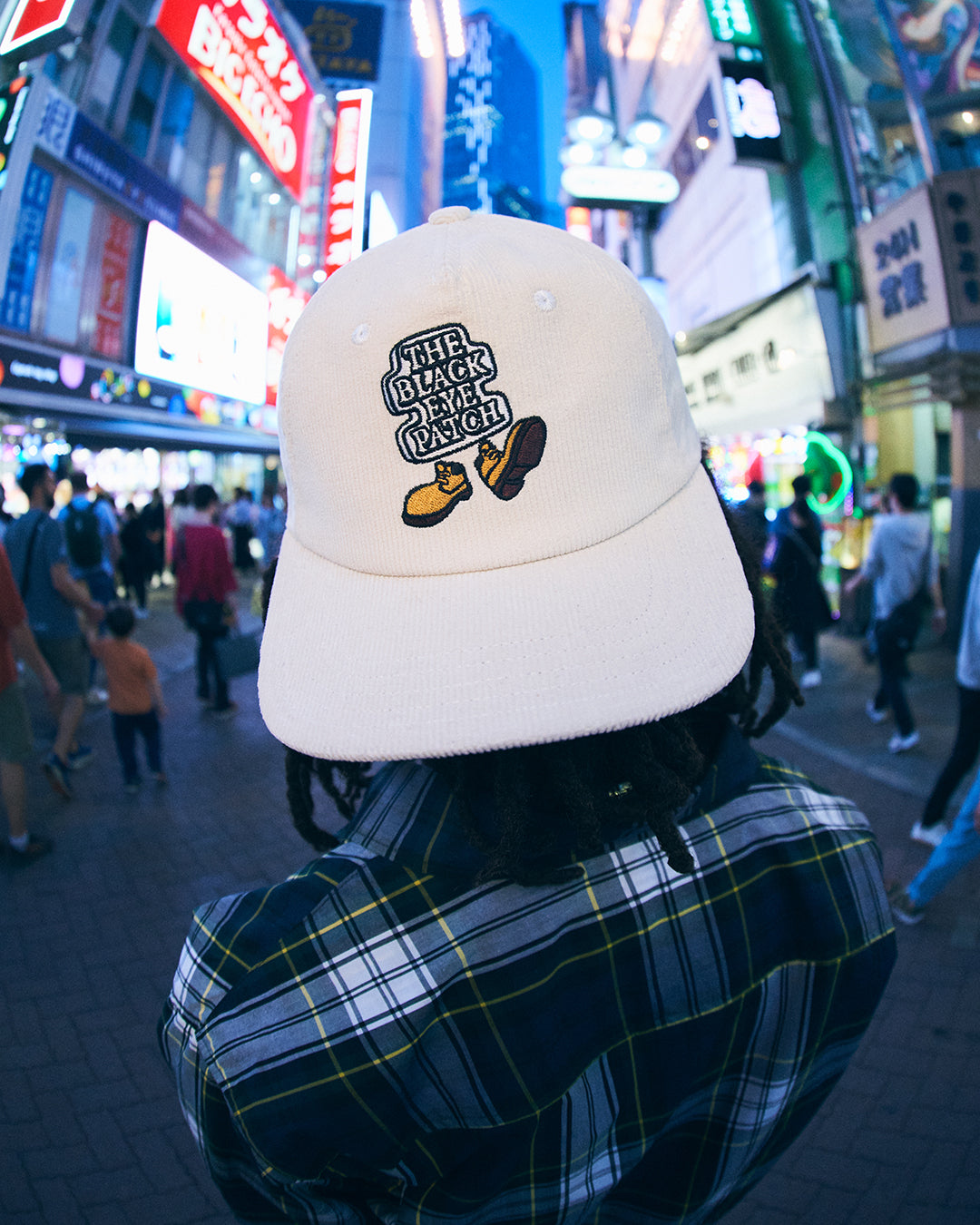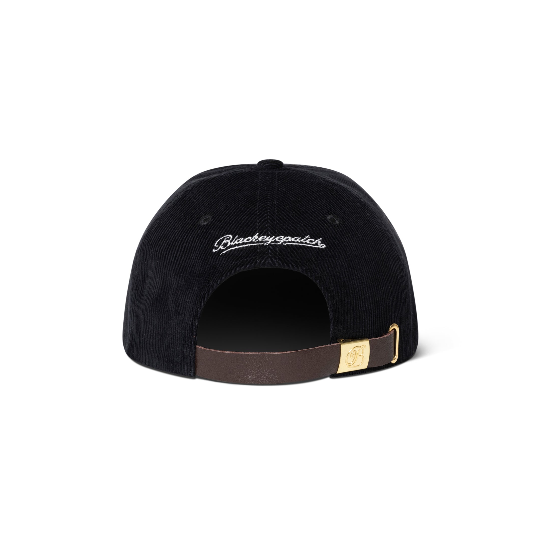 "OG BOY" が刺繍で施されたコーデュロイ生地を使用した 6 パネルキャップ。バックにはブランドネームのスクリプトロゴを刺繍。レザーベルトのストラップバック仕様。