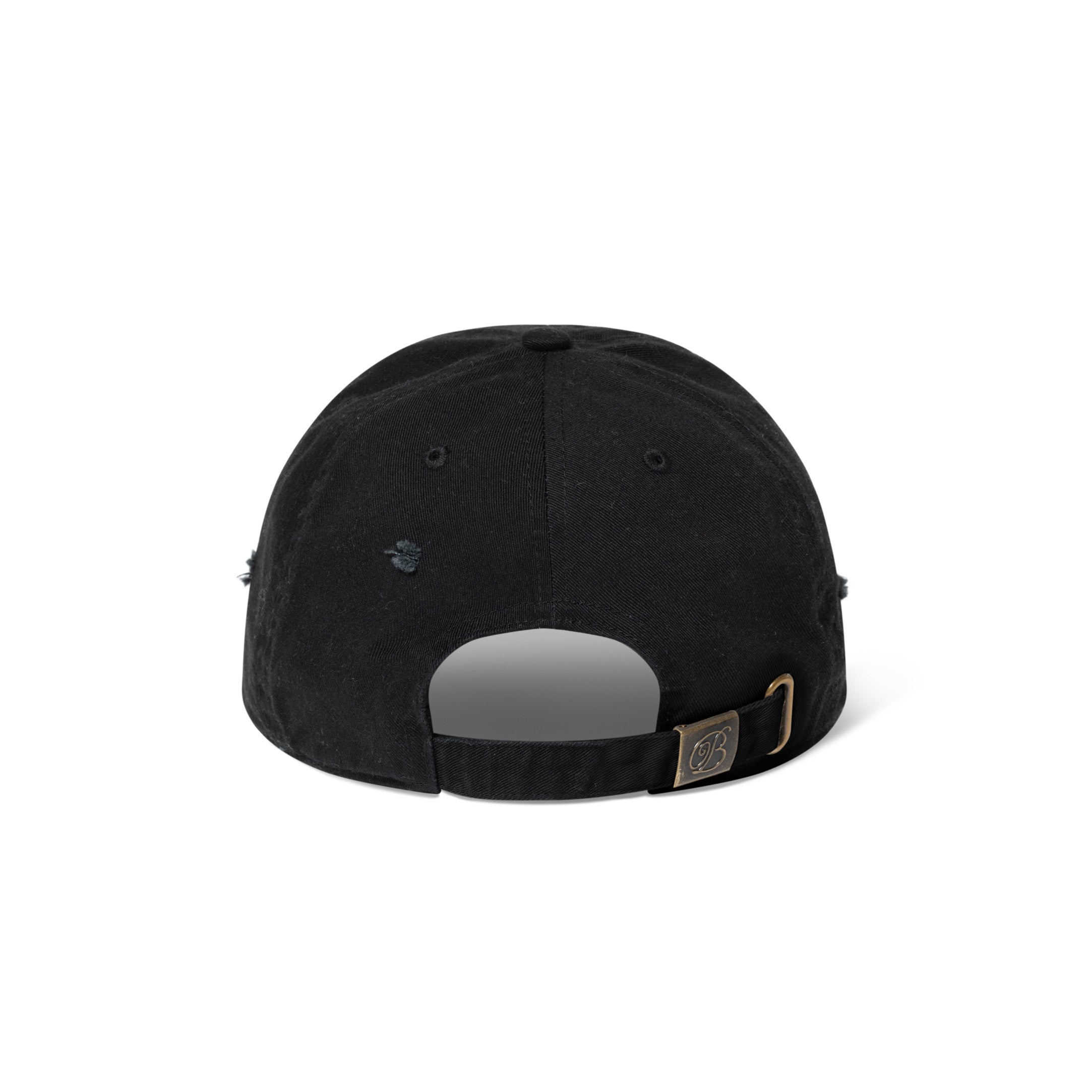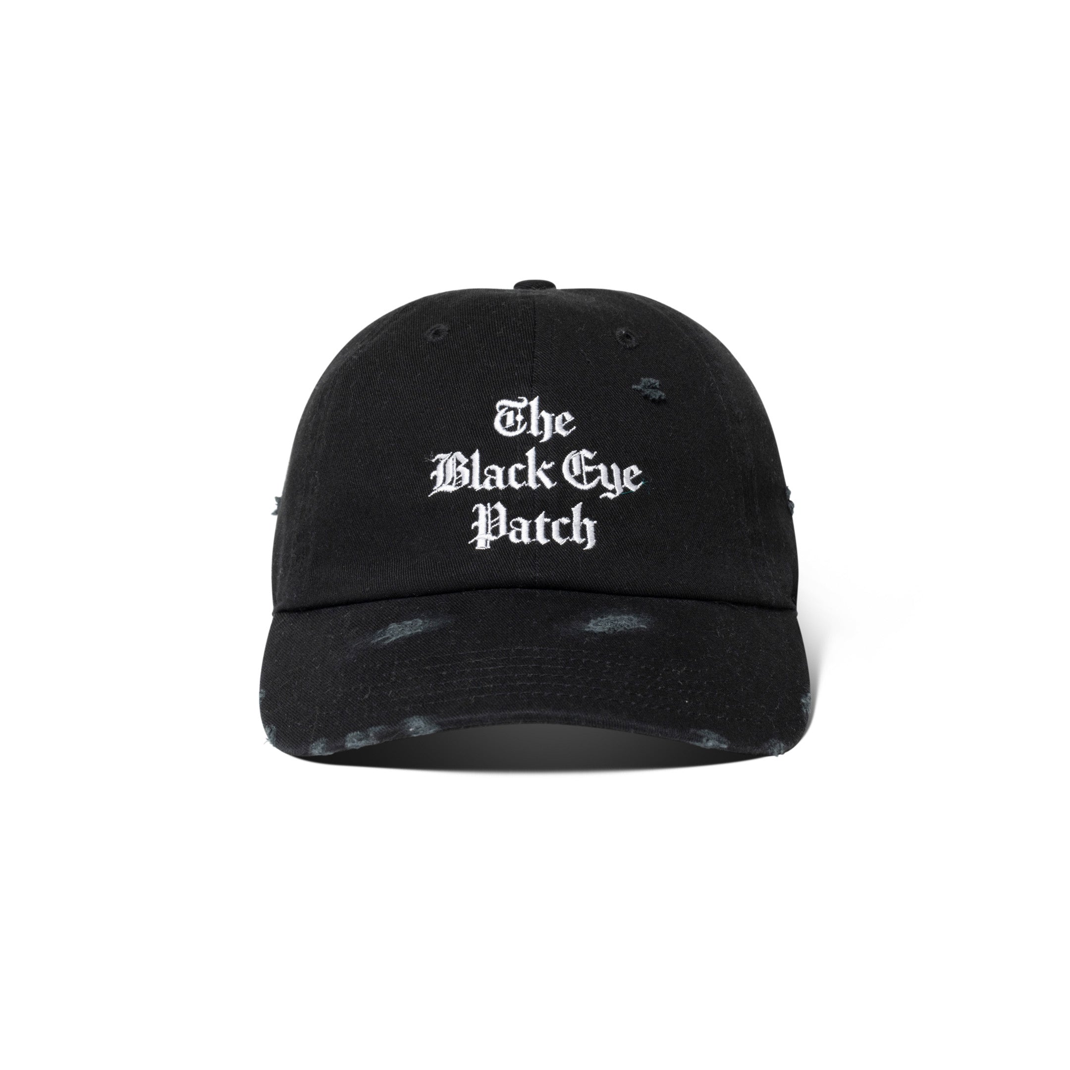 US の代表的な新聞社のロゴをサンプリングしたグラフィックを刺繍し、全体にダメージ加工を施したパネルキャップ。バックストラップでサイズの調整可能。