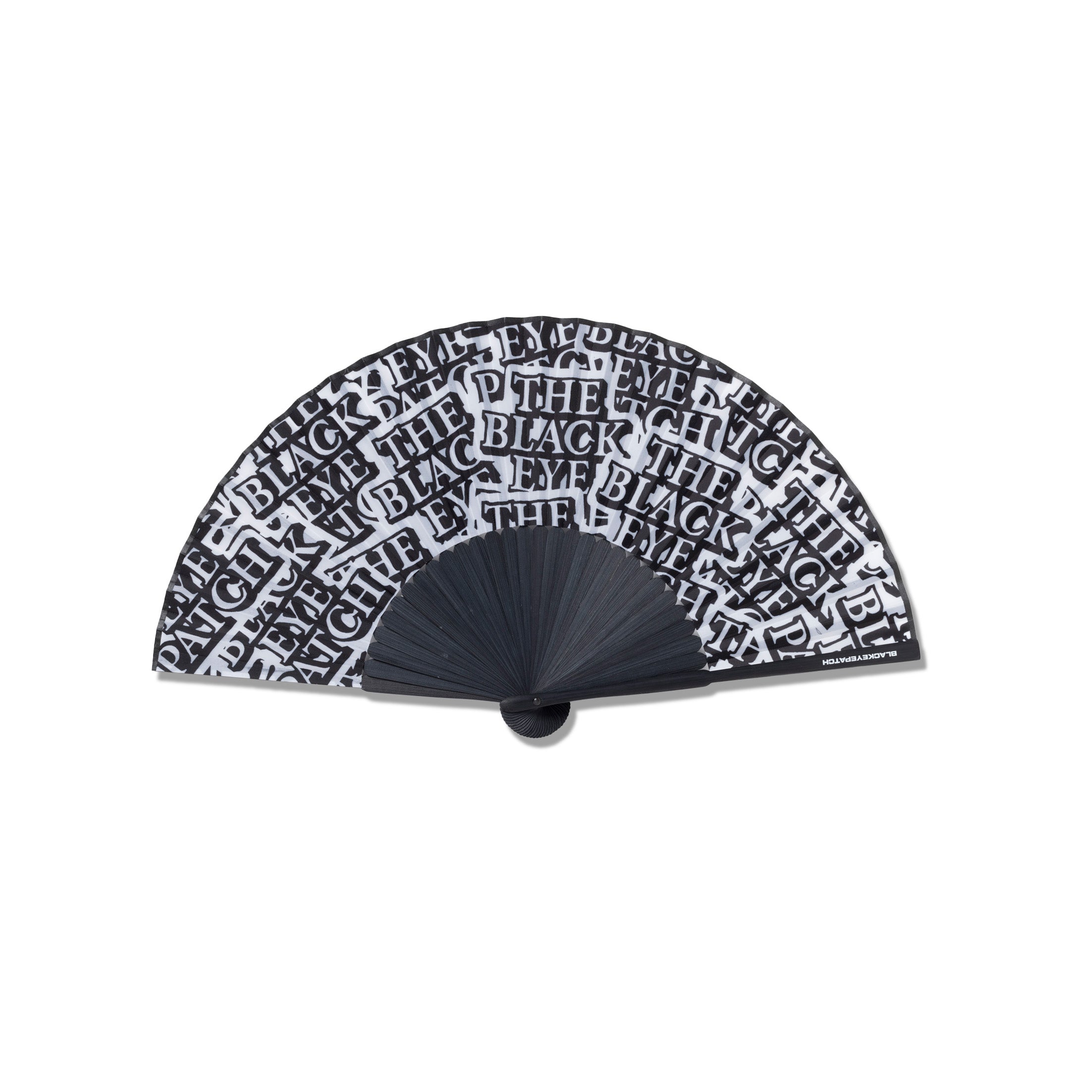 扇面に“OG LABEL”ロゴの総柄をプリントした木製の扇子。