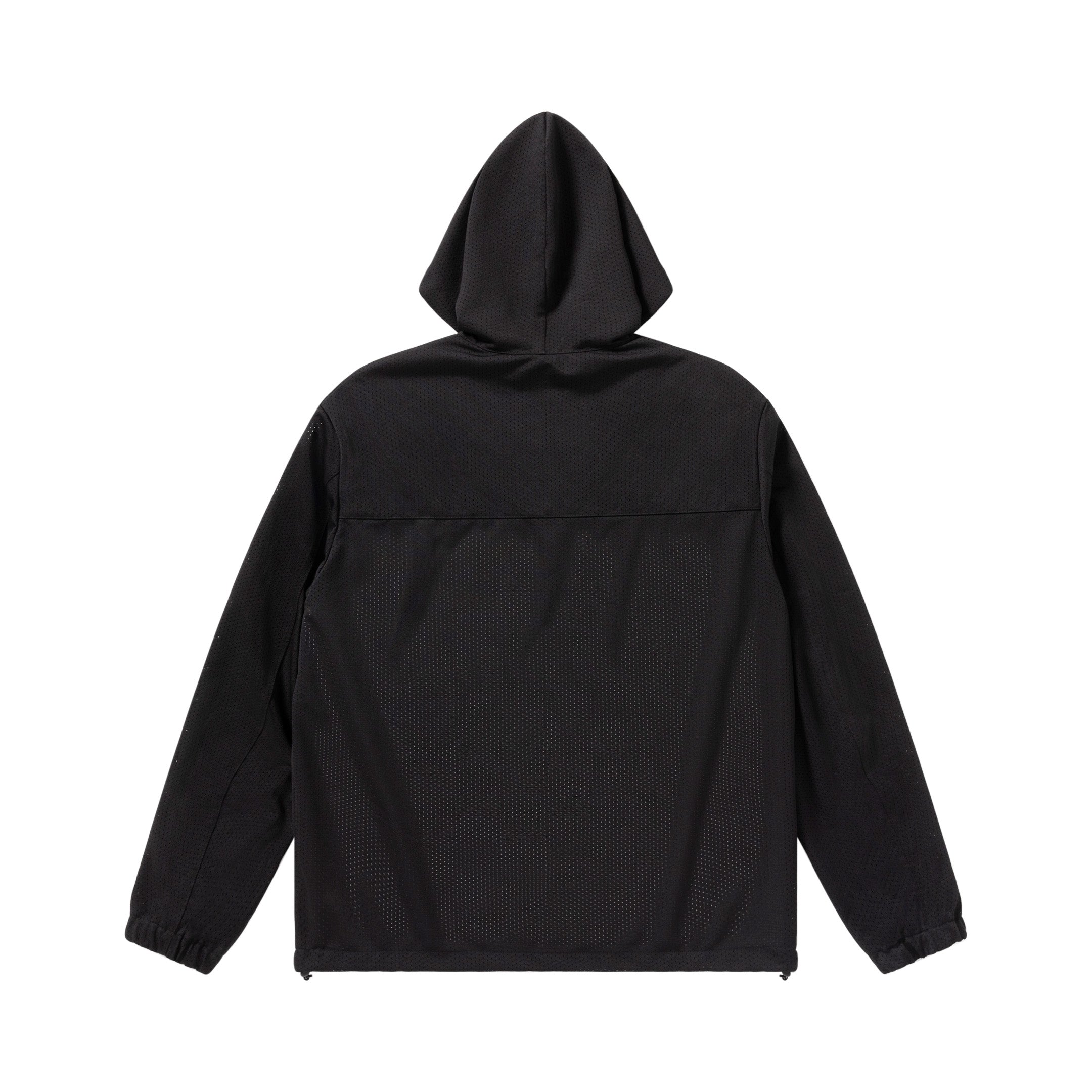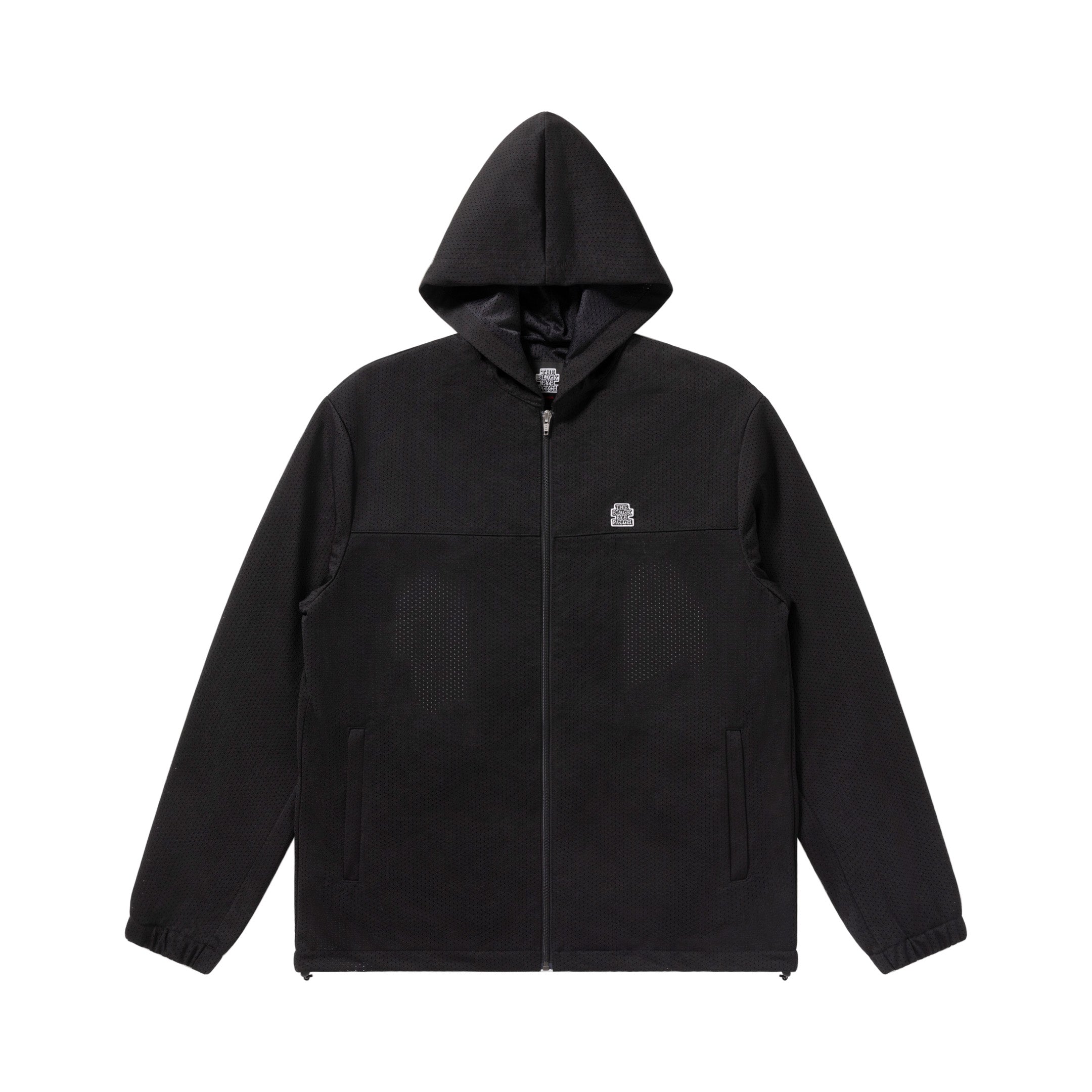 メインボディにメッシュ生地を採用し、胸部分の切り返しや異なったインナーメッシュを使用するなどディテールにも拘ったフーデッドジップアップジャケット。