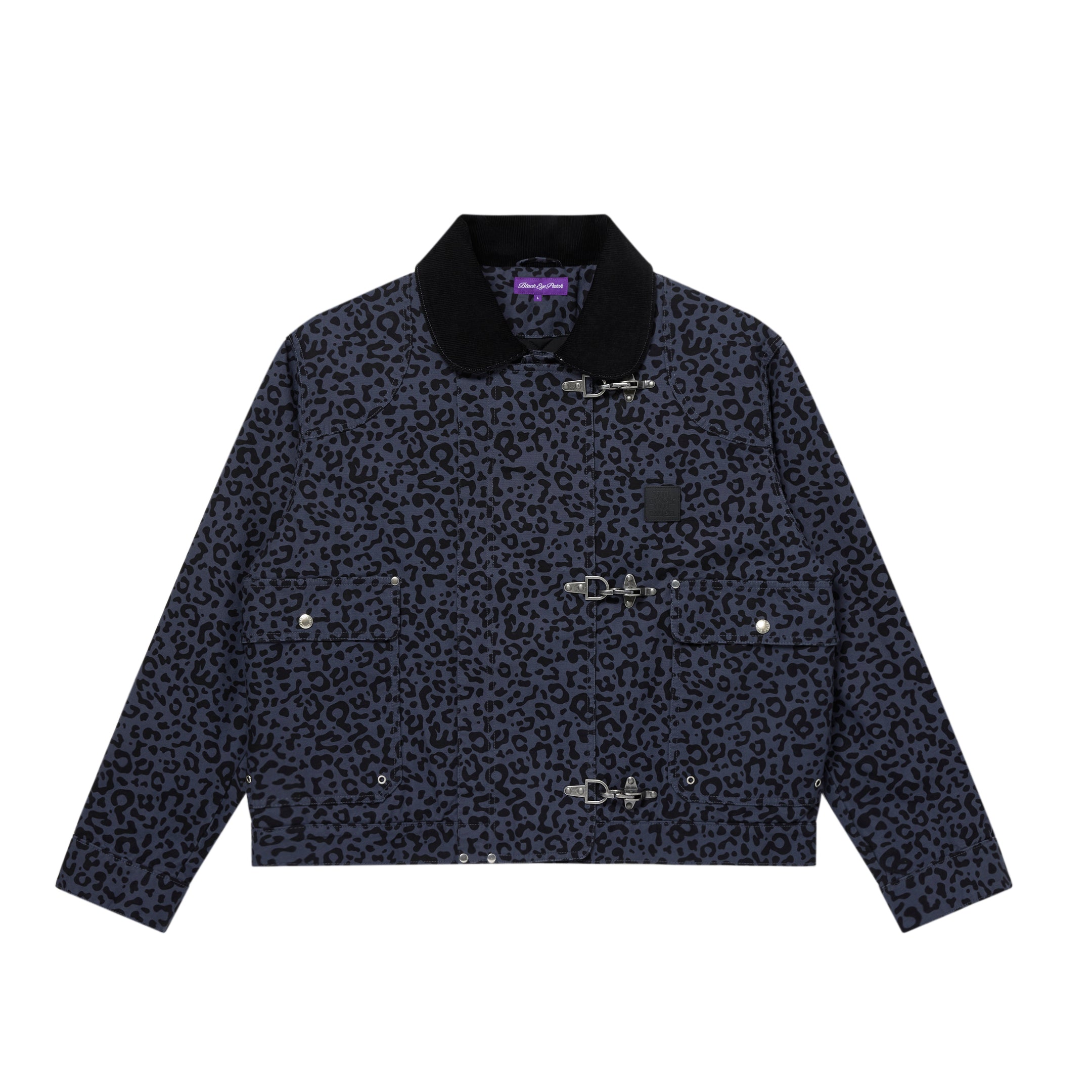 Fireman jacket made with washed duck fabric. The collar features corduroy fabric, and the chest is finished with an "OG LABEL" logo leather patch.