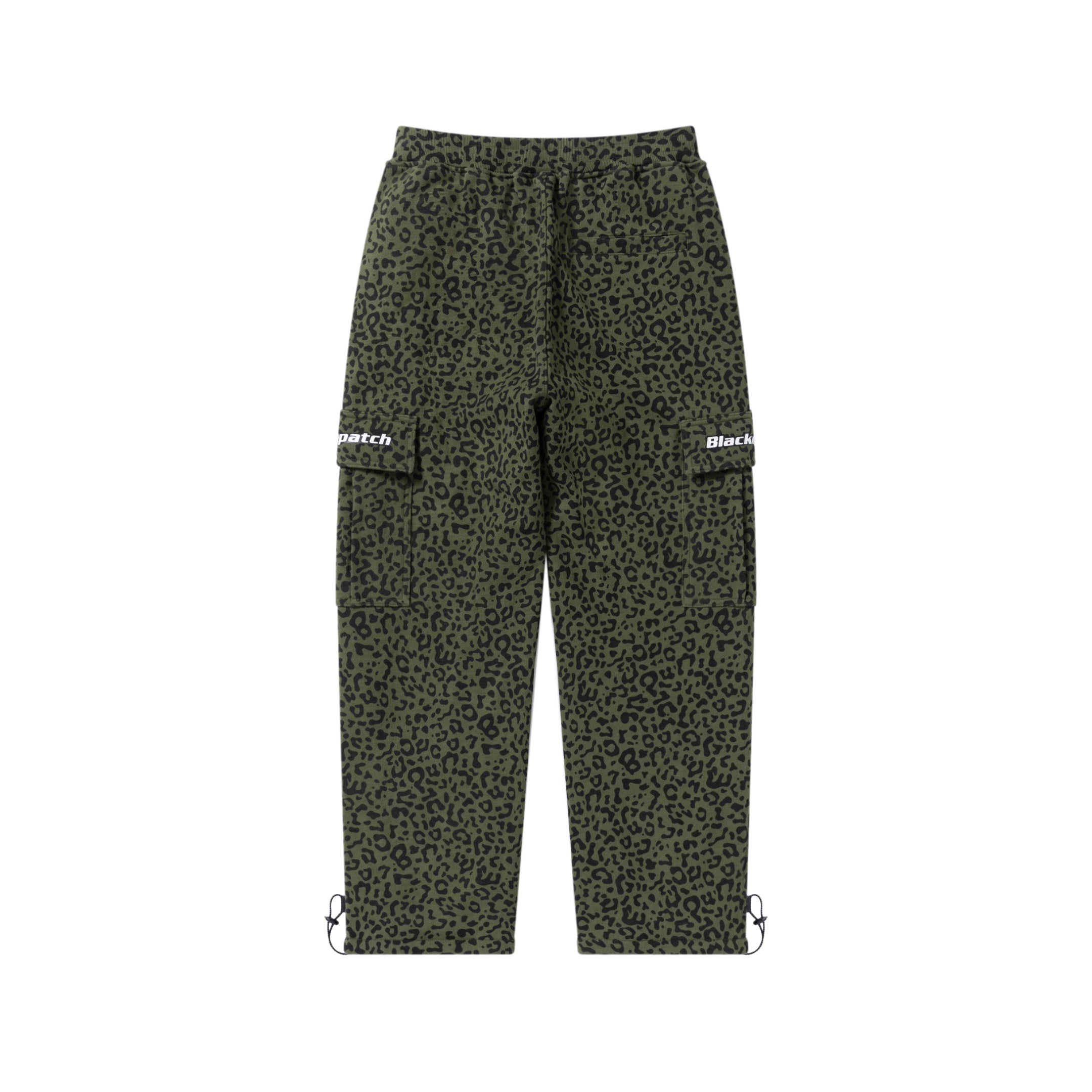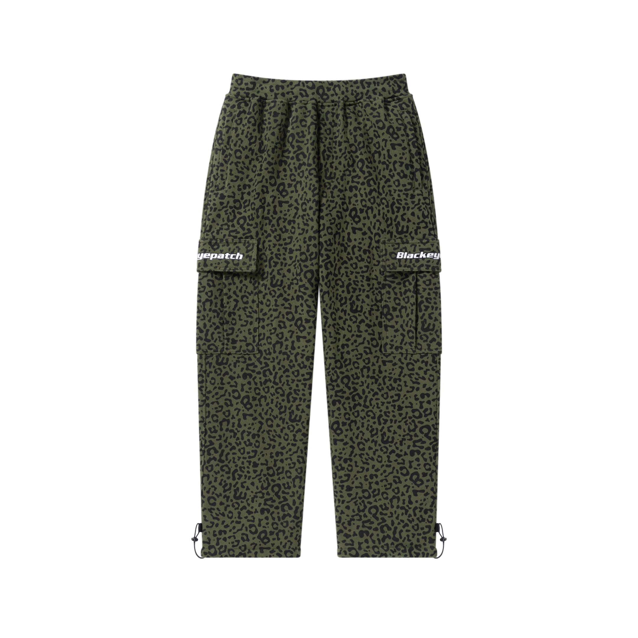 "BEP" の文字が溶け込んだブランドオリジナルのレオパード柄で表現したスウェットカーゴパンツ。