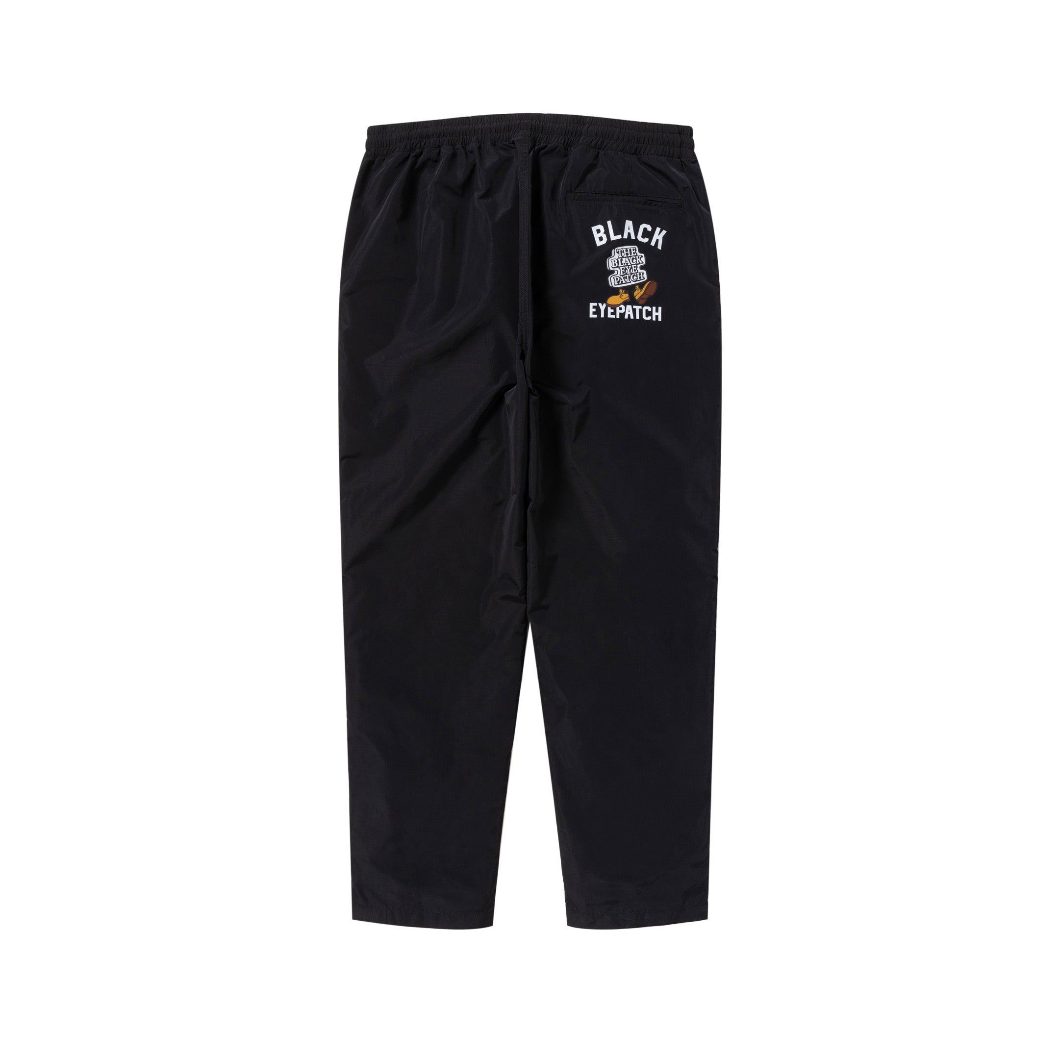 "OG BOY" のグラフィックがフロント部分にはワッペン刺繍、バックにはプリントで施されたテーパードシルエットのイージーパンツ。