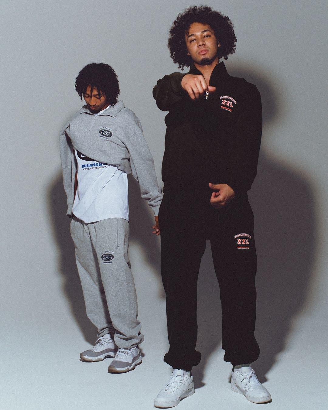 XXL サイズ(規模)のビッグビジネスを取り仕切っていることを示したグラフィックを左腿にプリントしたスウェットパンツ。