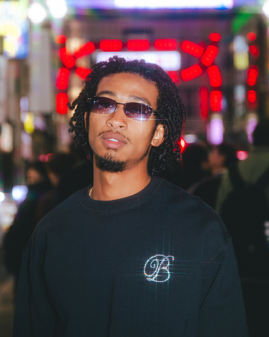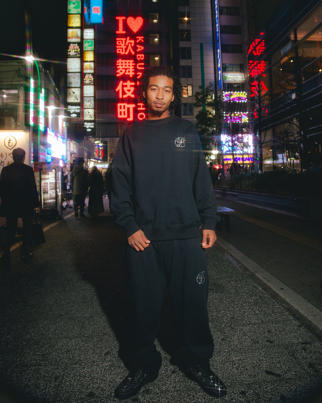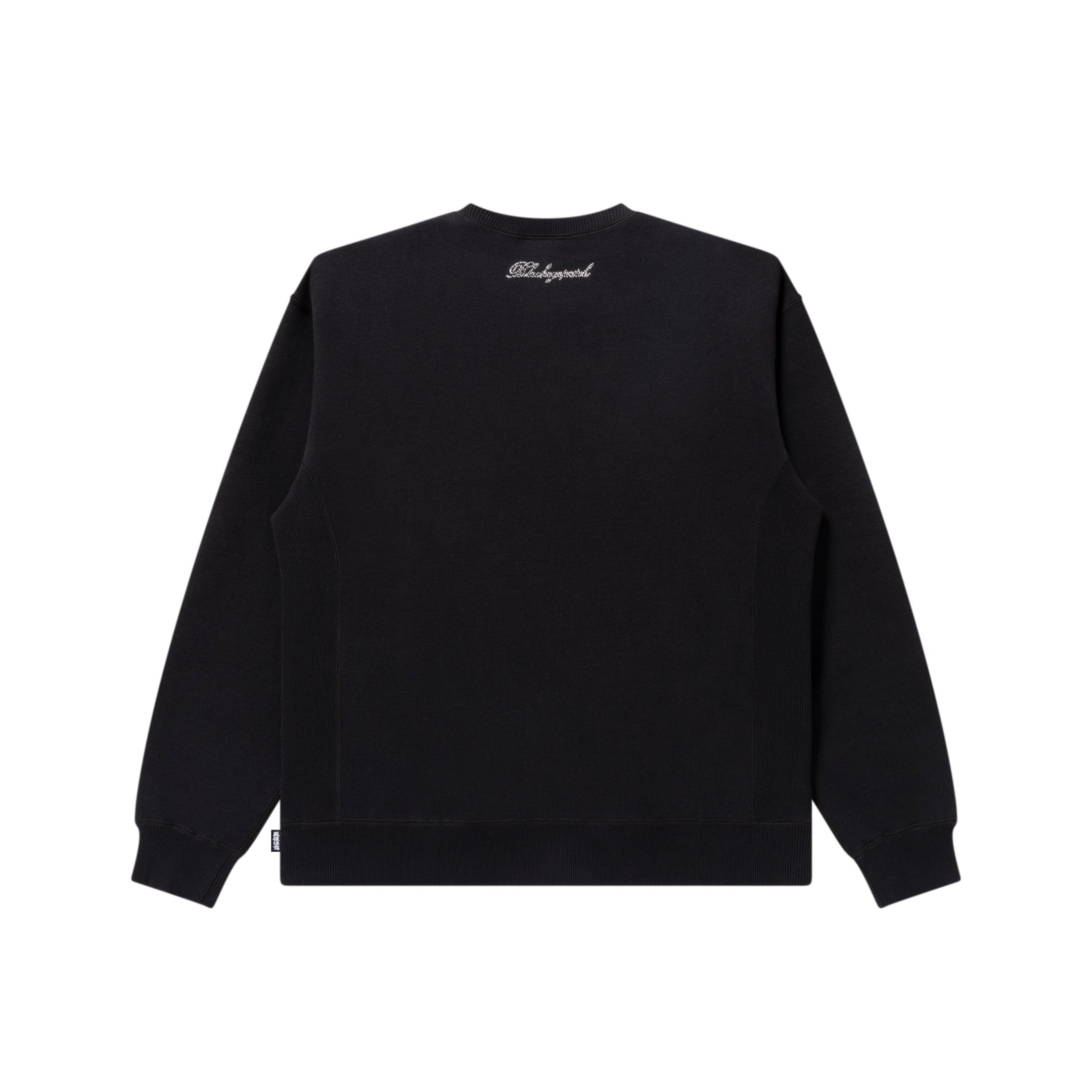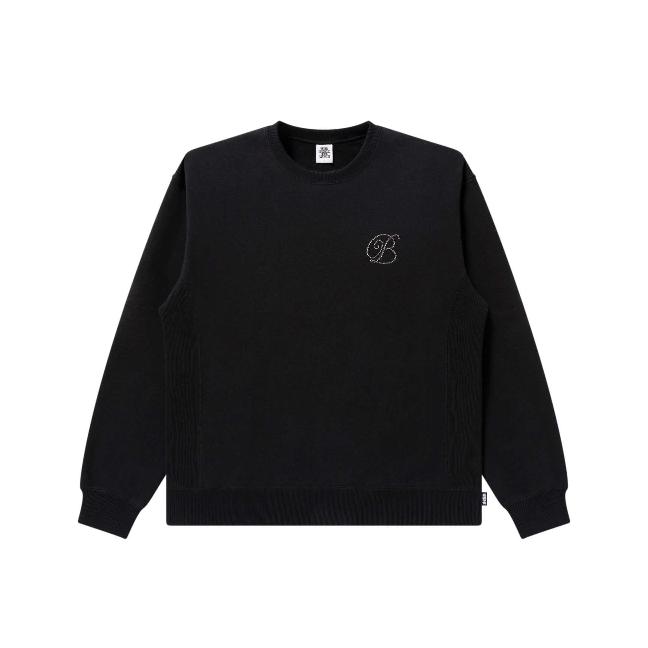 左胸に "B EMBLEM" ロゴをラインストーンで表現したクルーネックスウェット。 ボディは 12.5oz。