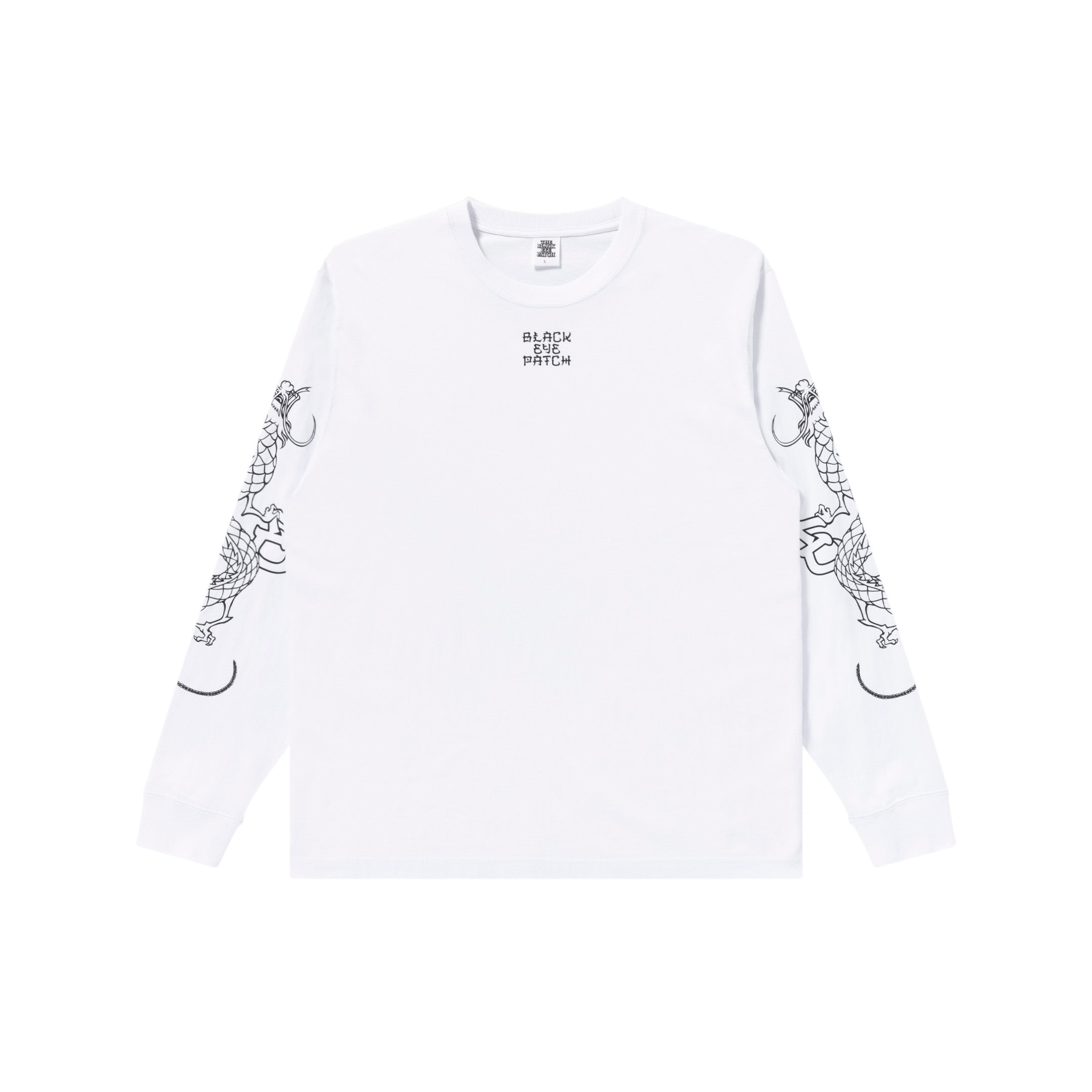 ブランド名を示す "BEP" のアルファベットを携えた龍のグラフィックを両袖にプリントしたロングスリーブ T シャツ。 フロントにはブランドオリジナルの "KANJI" フォントを使用したロゴをプリント。