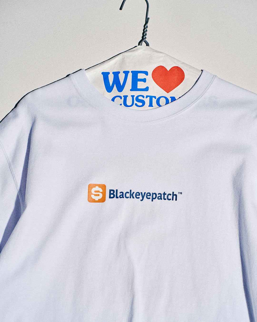 A 8.5oz long-sleeve t-shirt featuring a printed design sampling the BLOG SPOT logo.