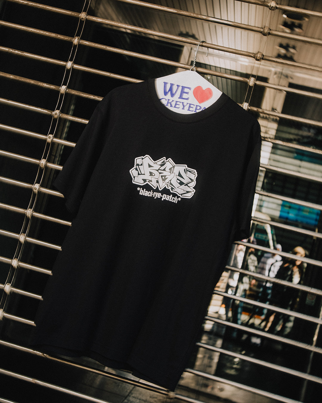 スローアップにて描かれた "BEP" のグラフィックがプリントされた T シャツ。ボディーは 8.5oz。プリントはシルクスクリーンプリント。