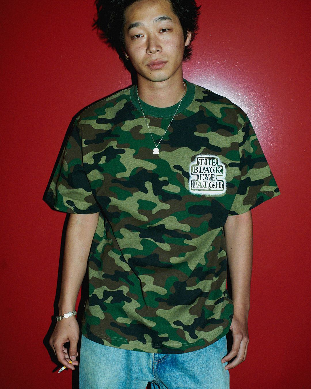 "OG LABEL" ロゴをステンシル調で表現したグラフィックをフロント・バックにプリントした T シャツ。ボディーは 8.5oz。プリントはシルクスクリーンプリント。