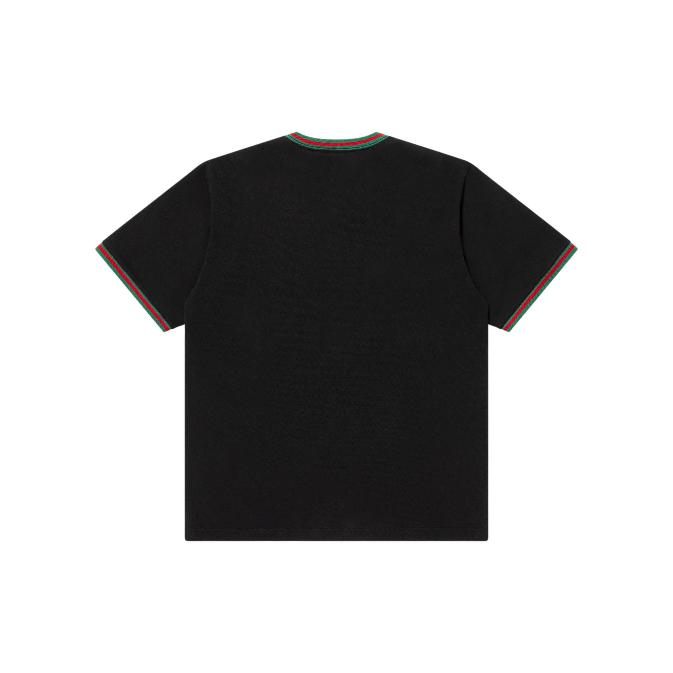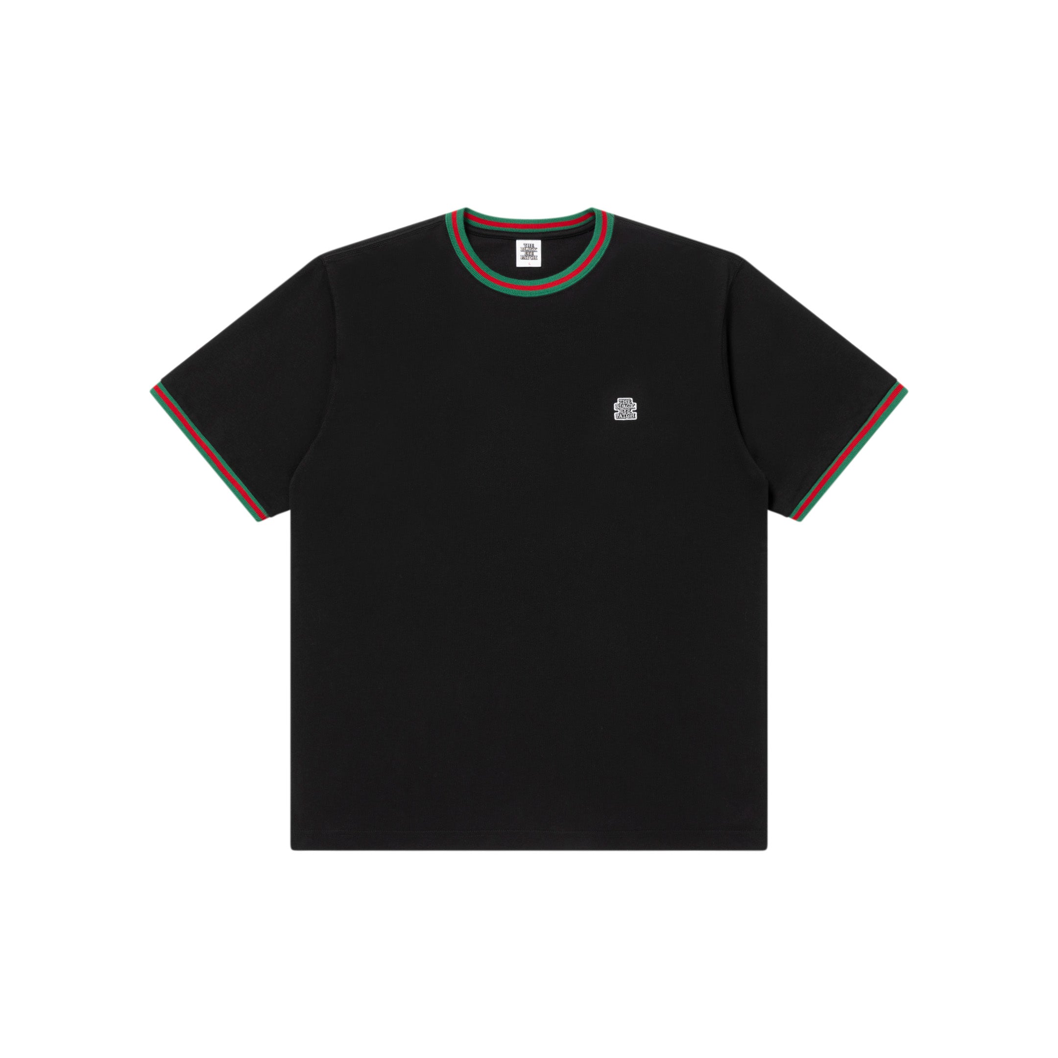 A 8.5oz t-shirt featuring "SMALL OG LABEL" logo patch on the left chest. The ribs around the neck and sleeves are designed with color-coded lines.