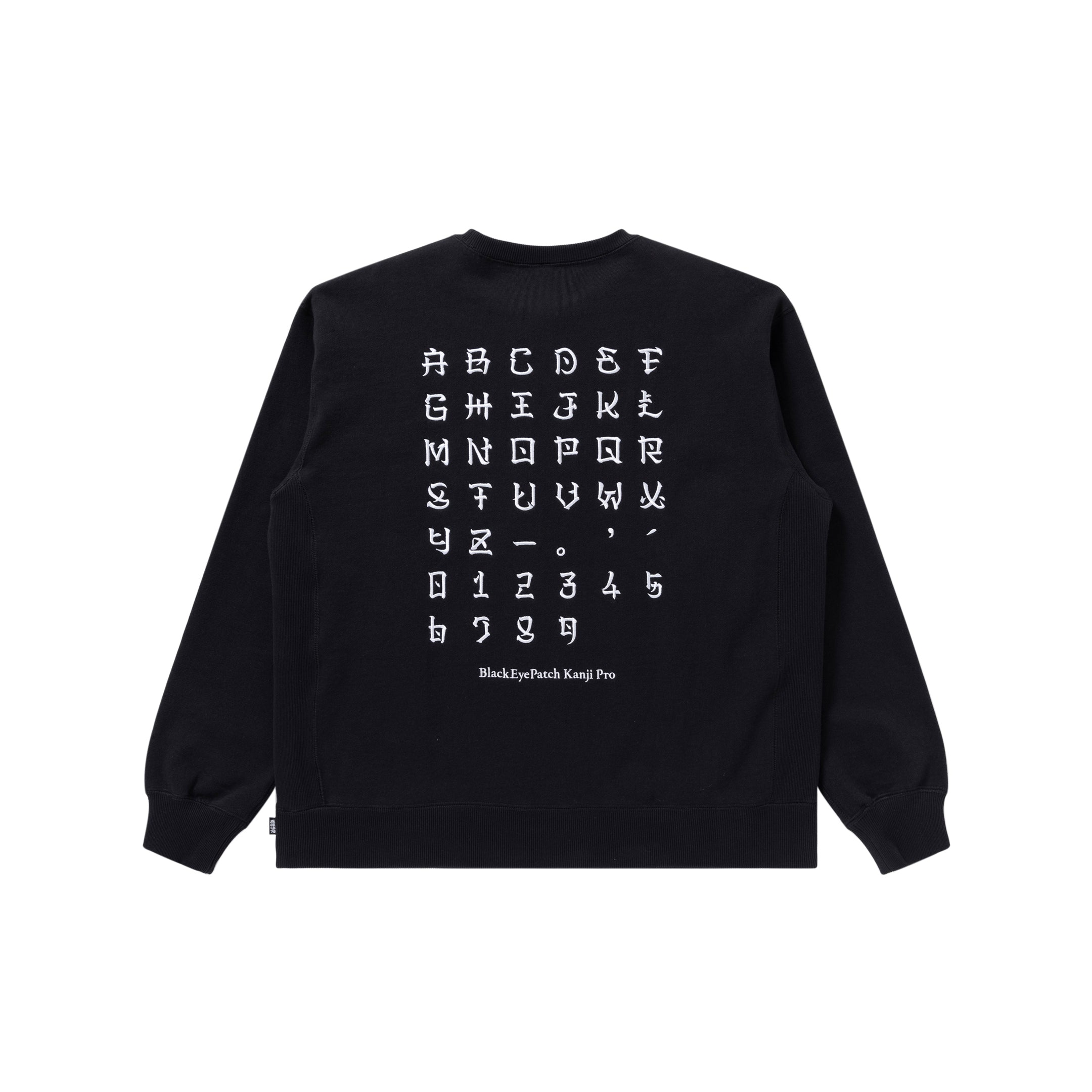 オリジナルの "KANJI FONT" バージョンの "OG LABEL" ロゴがプリントされたクルーネックスウェット。バックには "KANJI FONT" 一覧の刺繍が施された仕上がり。ボディは裏起毛で 12.5oz。