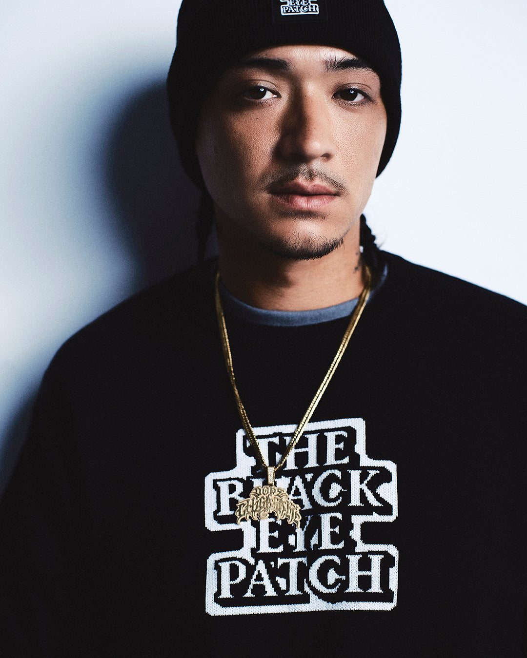 "OG LABEL" ロゴをジャガードで表現したコットン混生地のクルーネックニット。
