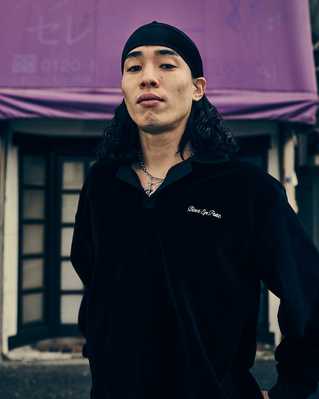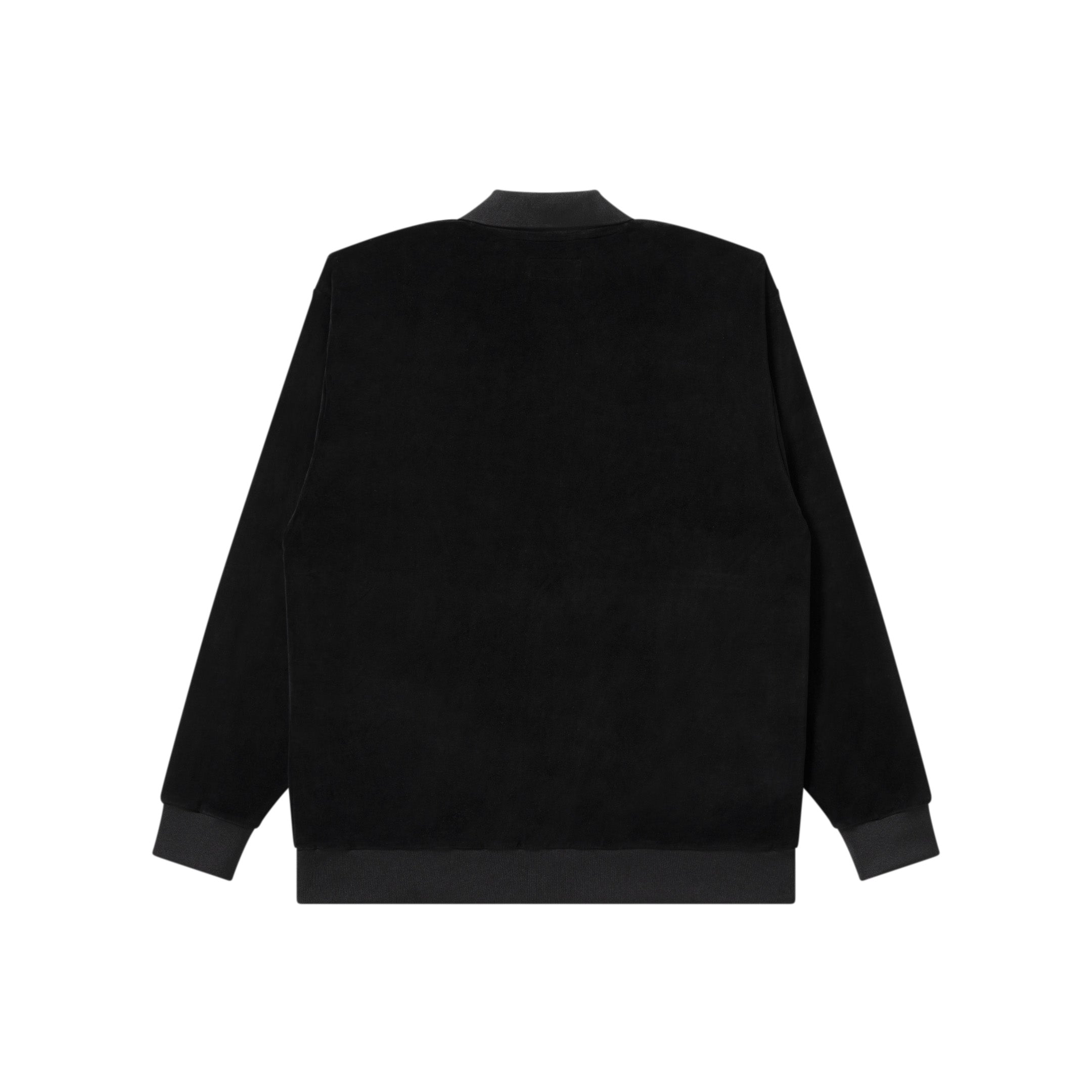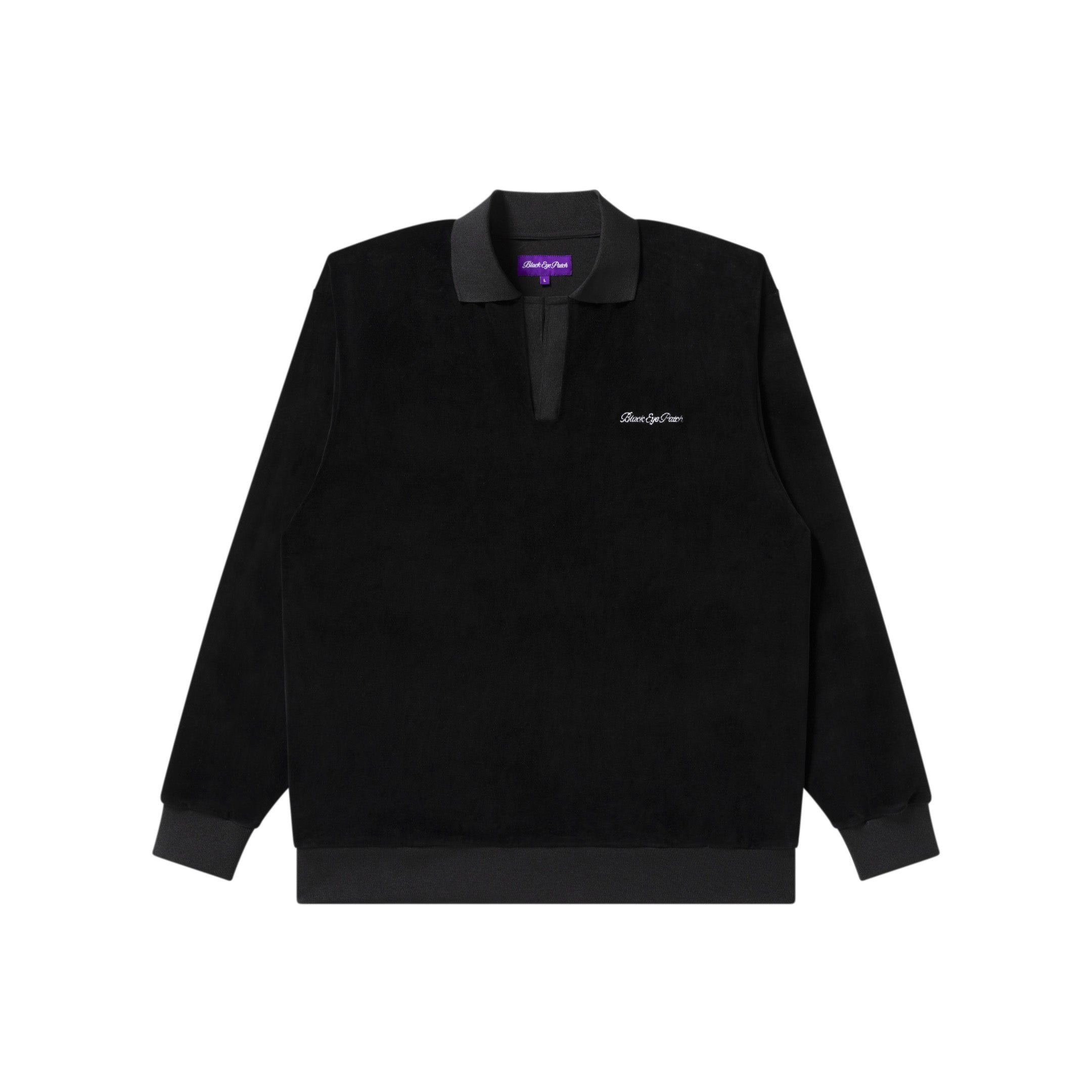 SCRIPT LOGO COLLARED VELOUR PULLOVER BLACK