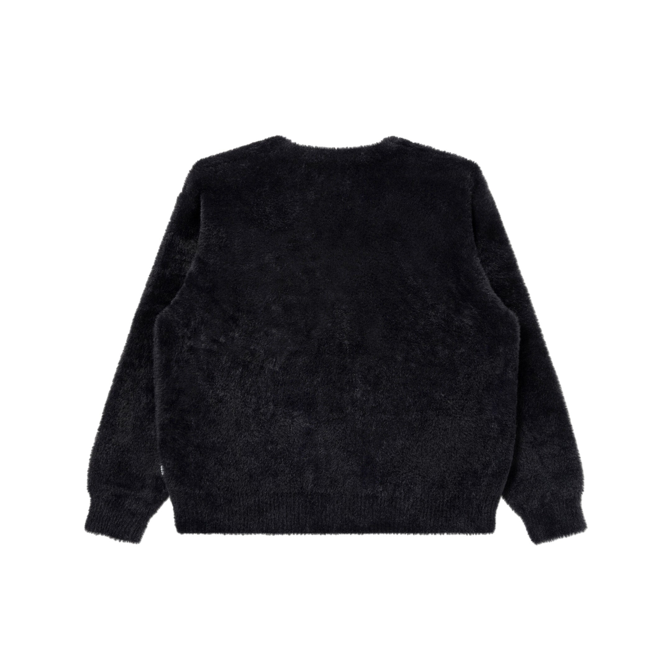 This cardigan is made of shaggy fabric with a soft and comfortable fit. A "SMALL OG LABEL" patch on the left chest and a "Handle with care" pistag on the side.